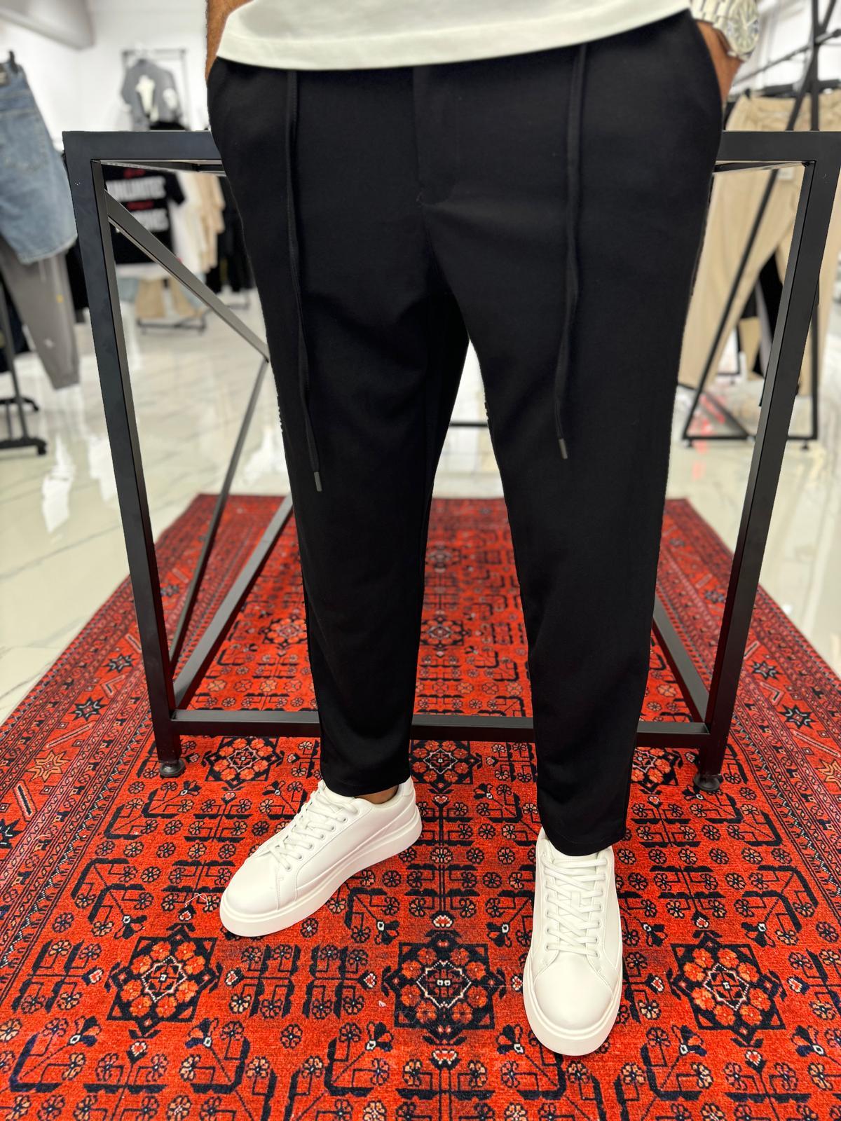 Armür Örme Kumaş Likralı Ayarlanabilir Kemerli Pantolon Siyah