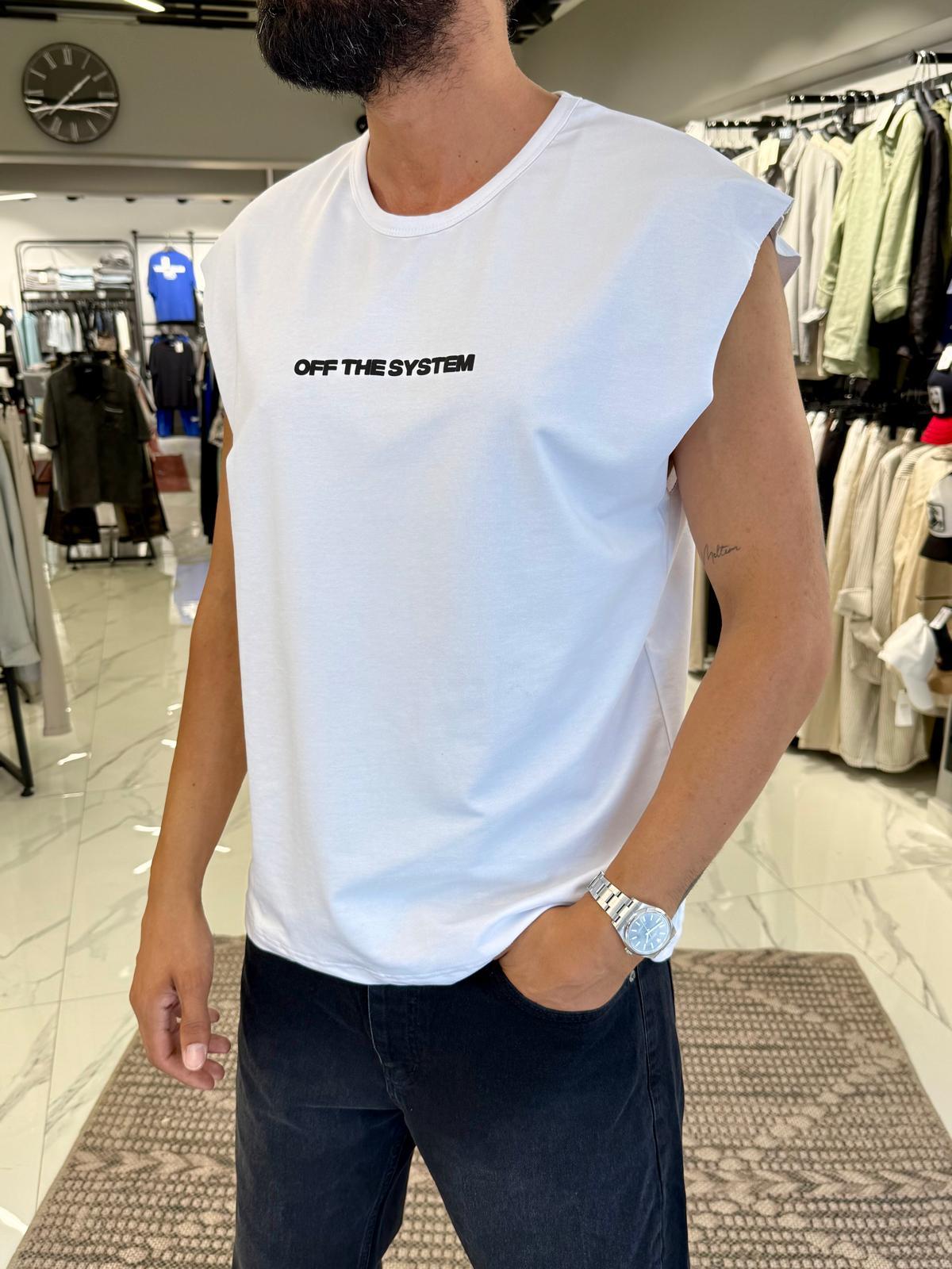 Aslan Baskılı Oversize Kolsuz Tişört Beyaz