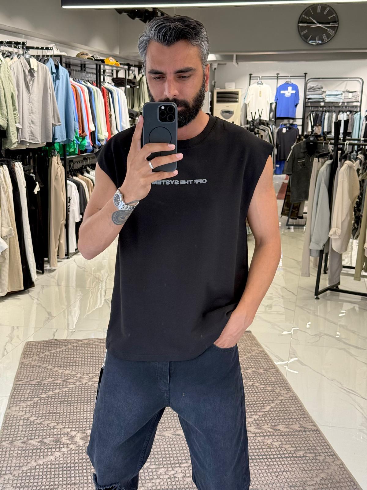 Aslan Baskılı Oversize Kolsuz Tişört Siyah