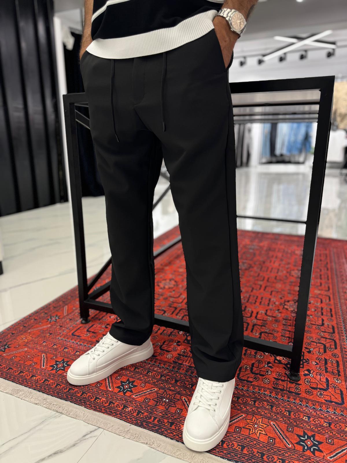 Baggy Kalıp Kemerli Ayarlanabilir Poliviscon Kumaş Pantolon Siyah