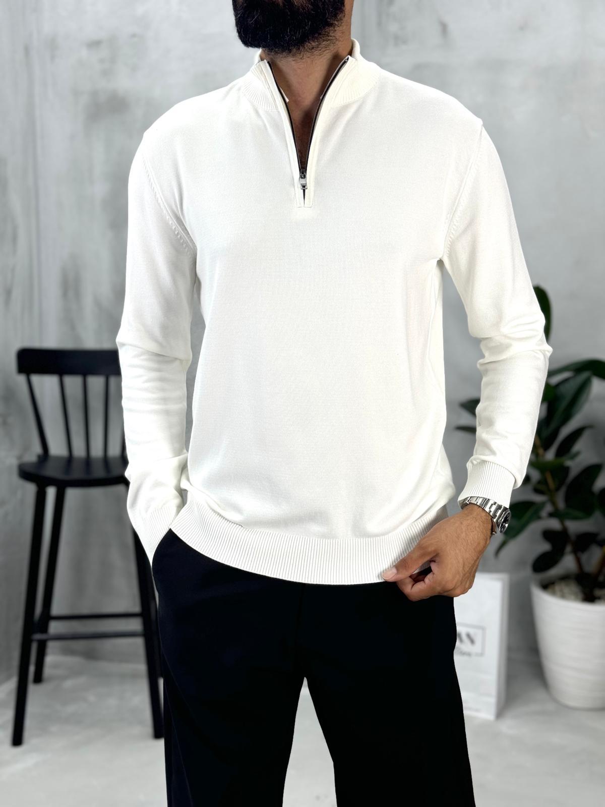 Balıkçı Yaka Fermuarlı Triko Beyaz