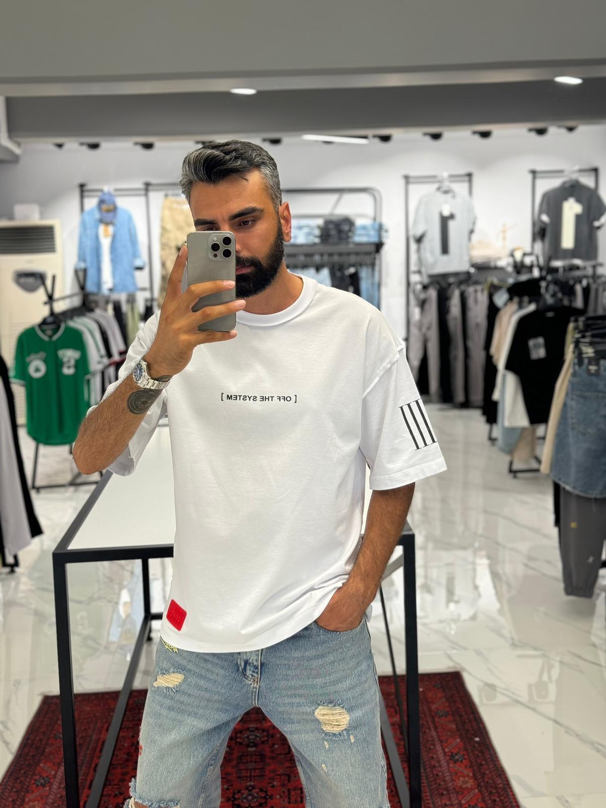 Baskı Detay Oversize T-Shirt Beyaz
