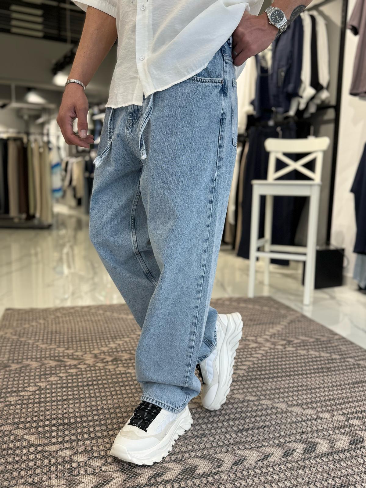 Bel Kemerli Baggy Kalıp Pantolon Mavi