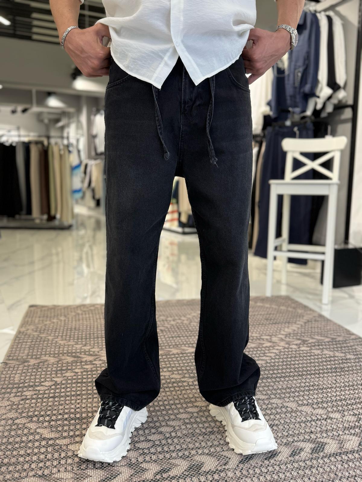 Bel Kemerli Baggy Kalıp Pantolon Siyah