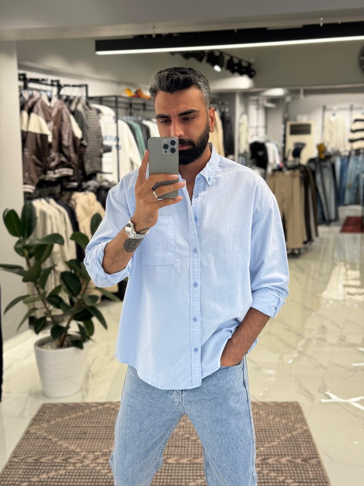 Cep Detay Basic Gömlek Mavi