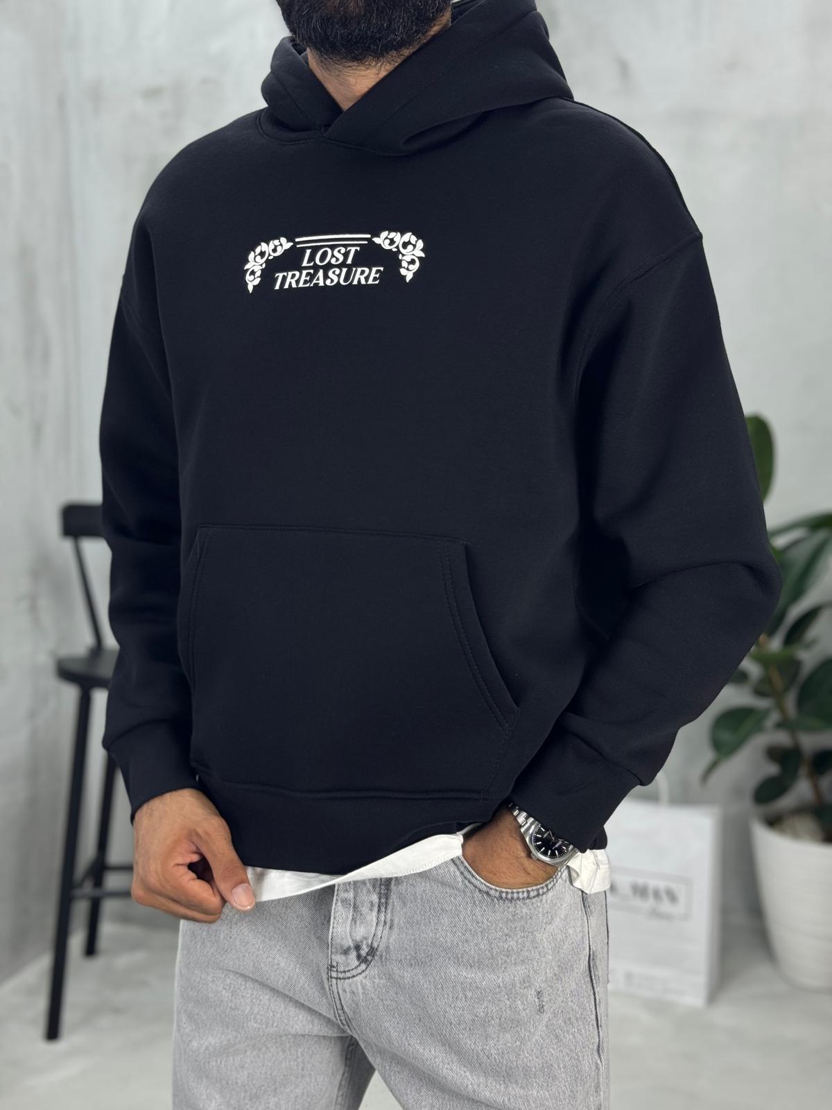 Çerçeve Baskılı Sweatshirt Siyah