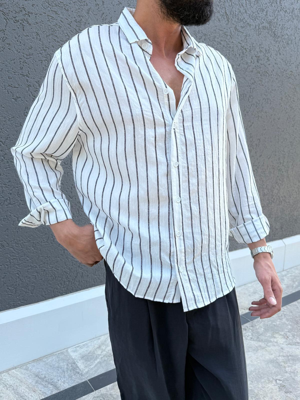 Çizgi Detaylı Oversize Kalıp Gömlek Beyaz