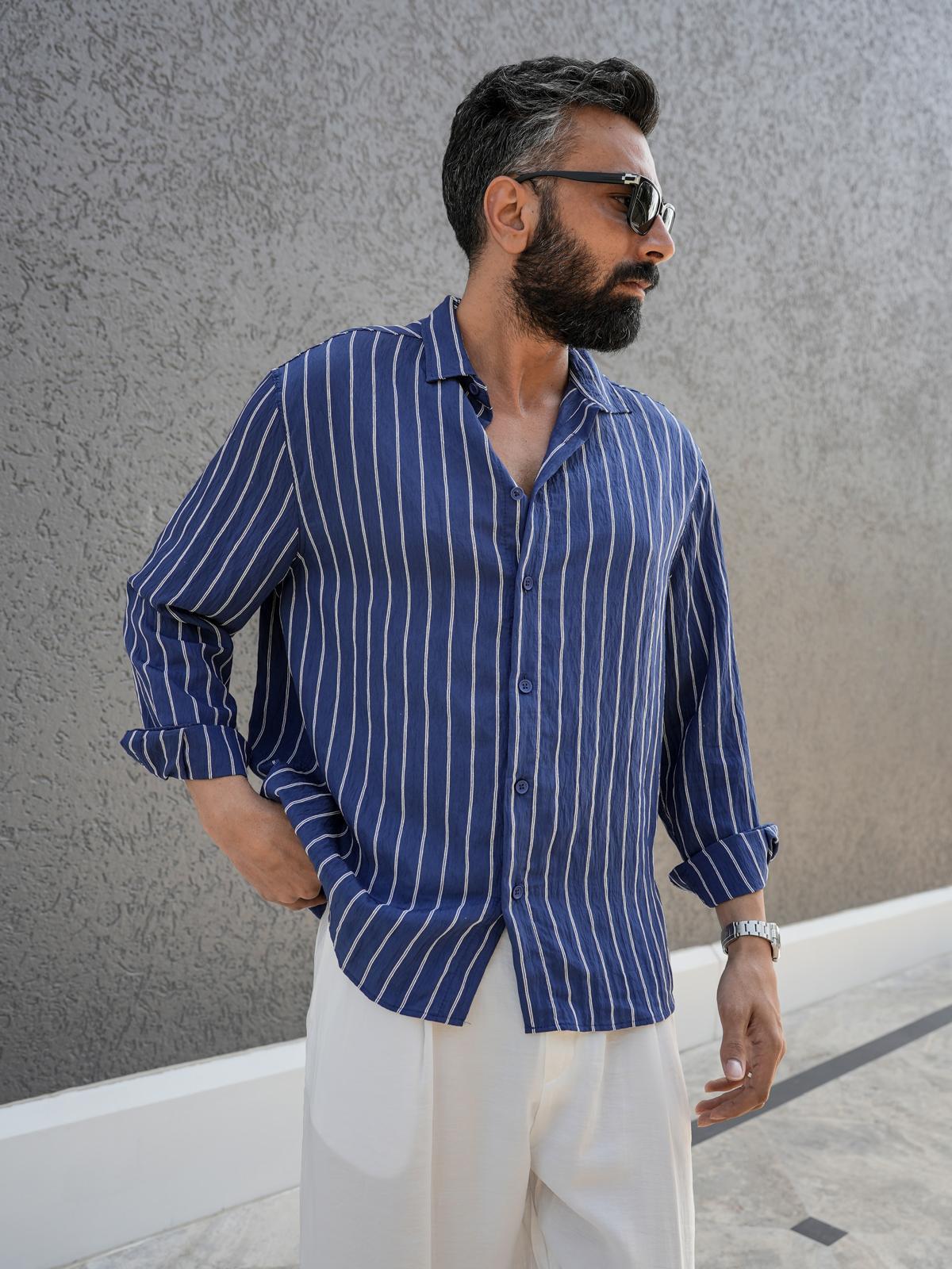 Çizgi Detaylı Oversize Kalıp Gömlek Lacivert