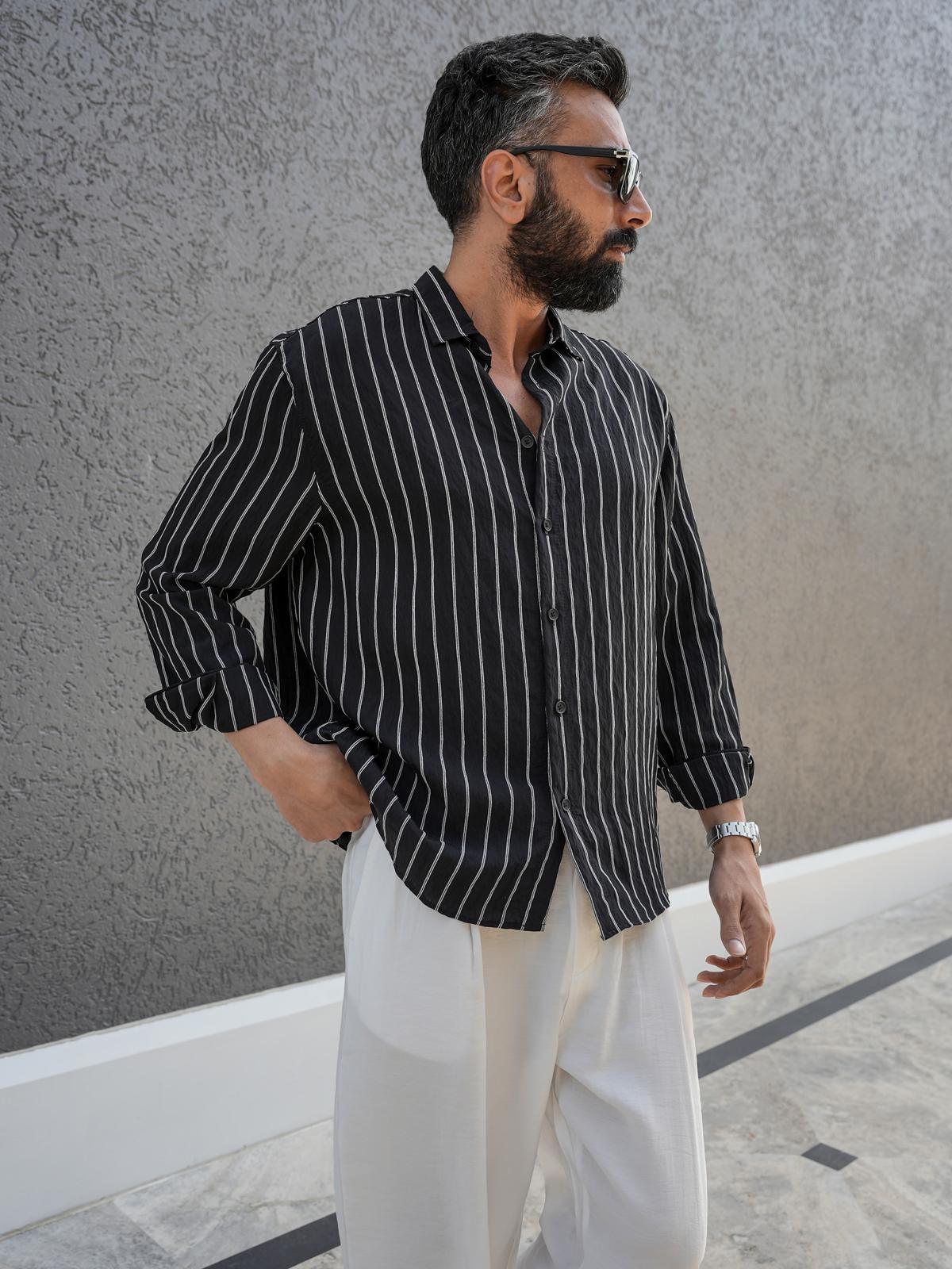 Çizgi Detaylı Oversize Kalıp Gömlek Siyah