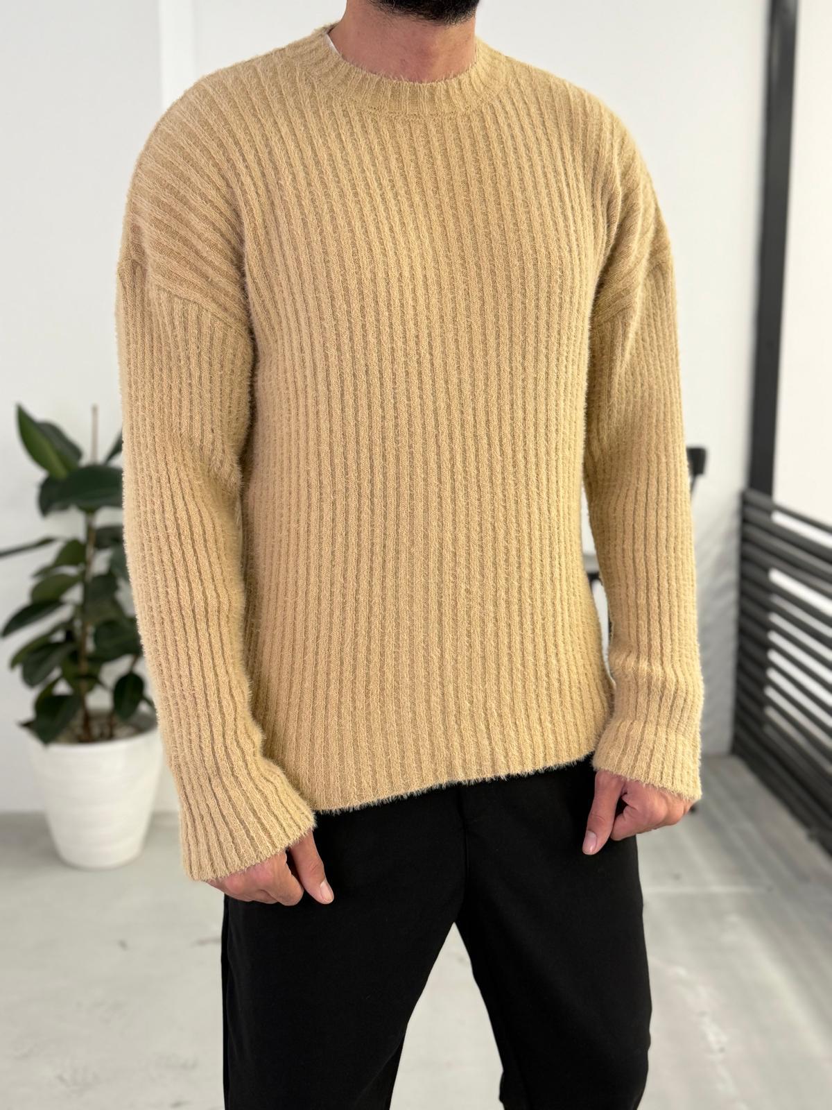 Çizgili Bisiklet Yaka Dolgulu Kazak Taba