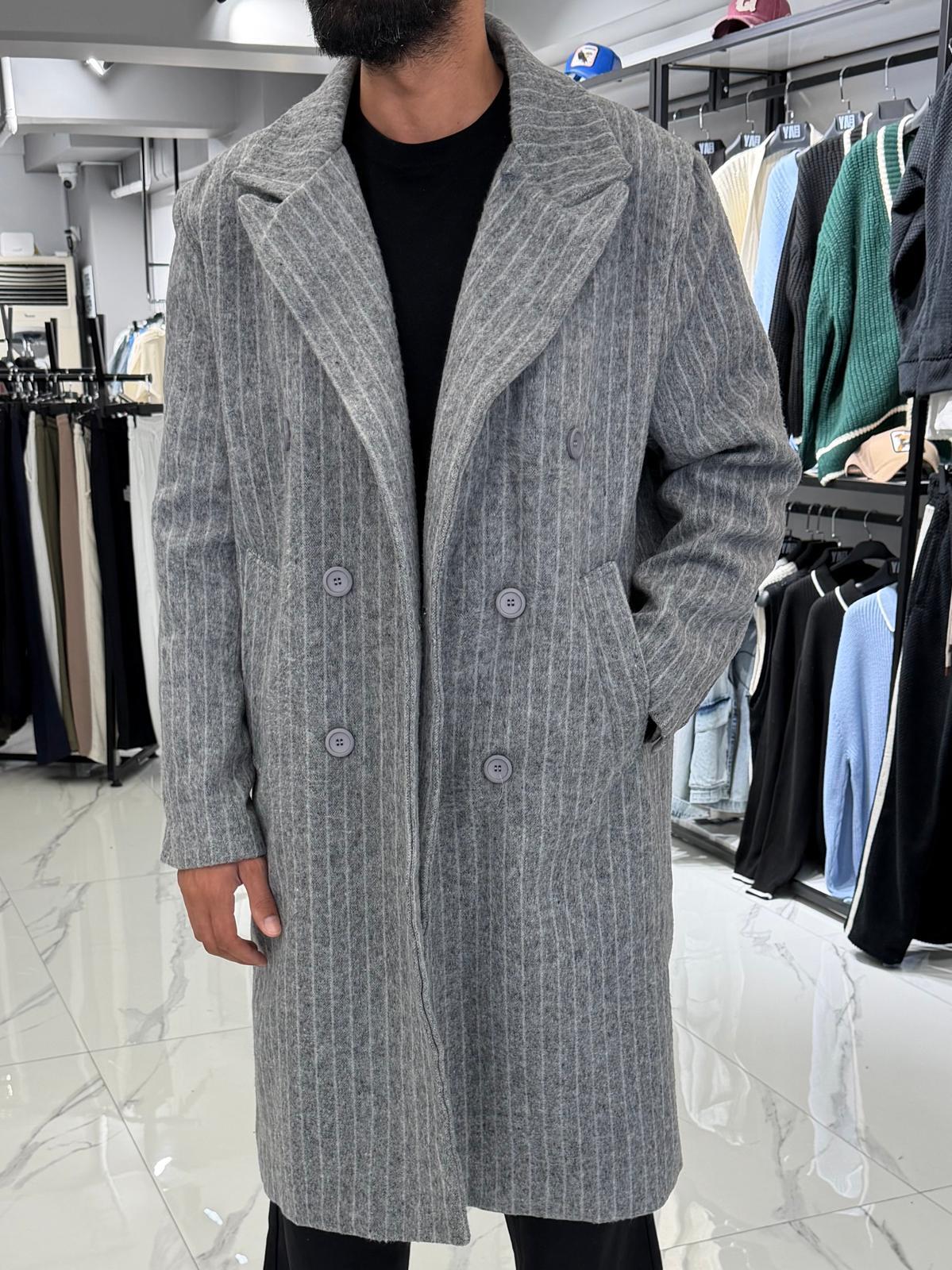 Çizgili Kaşe Kaban Siyah Çizgili Kaşe Kaban Lacivert
