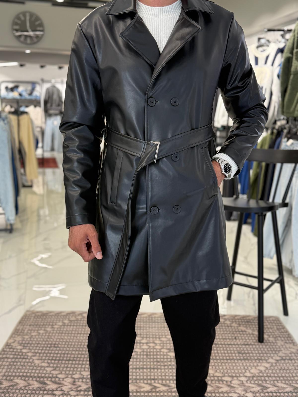 Deri Trençkot Siyah