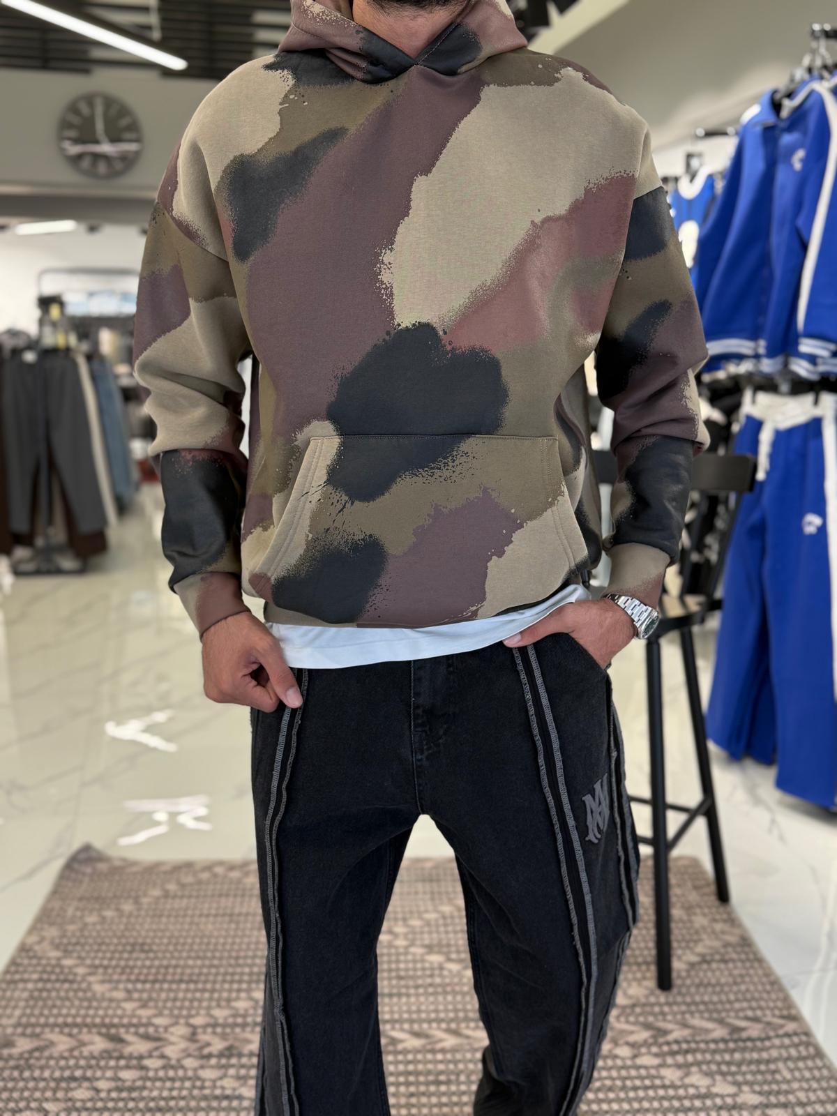 Desenli Deri Detay Sweatshirt