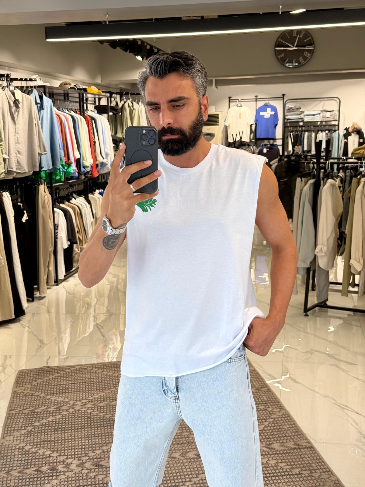 Desenli Kolsuz Oversize Tişört Siyah Desenli Kolsuz Oversize Tişört Mint