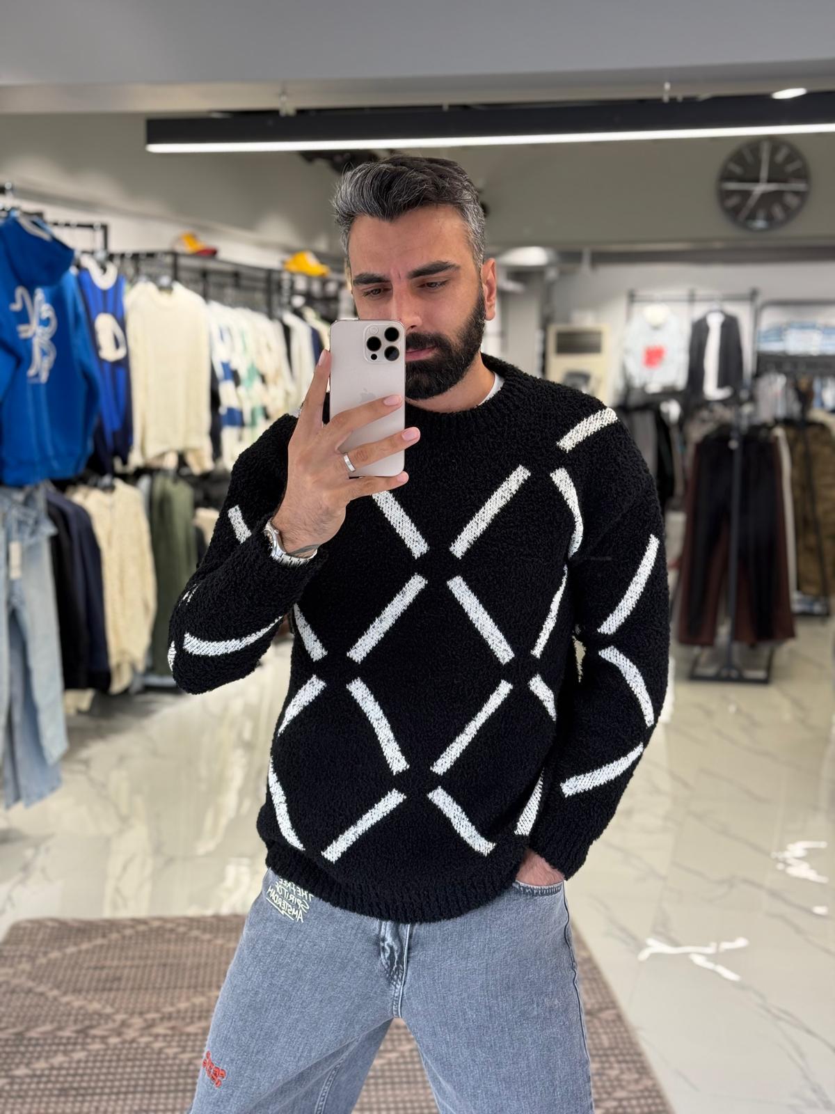 Desenli Oversize Kalıp Kazak Siyah
