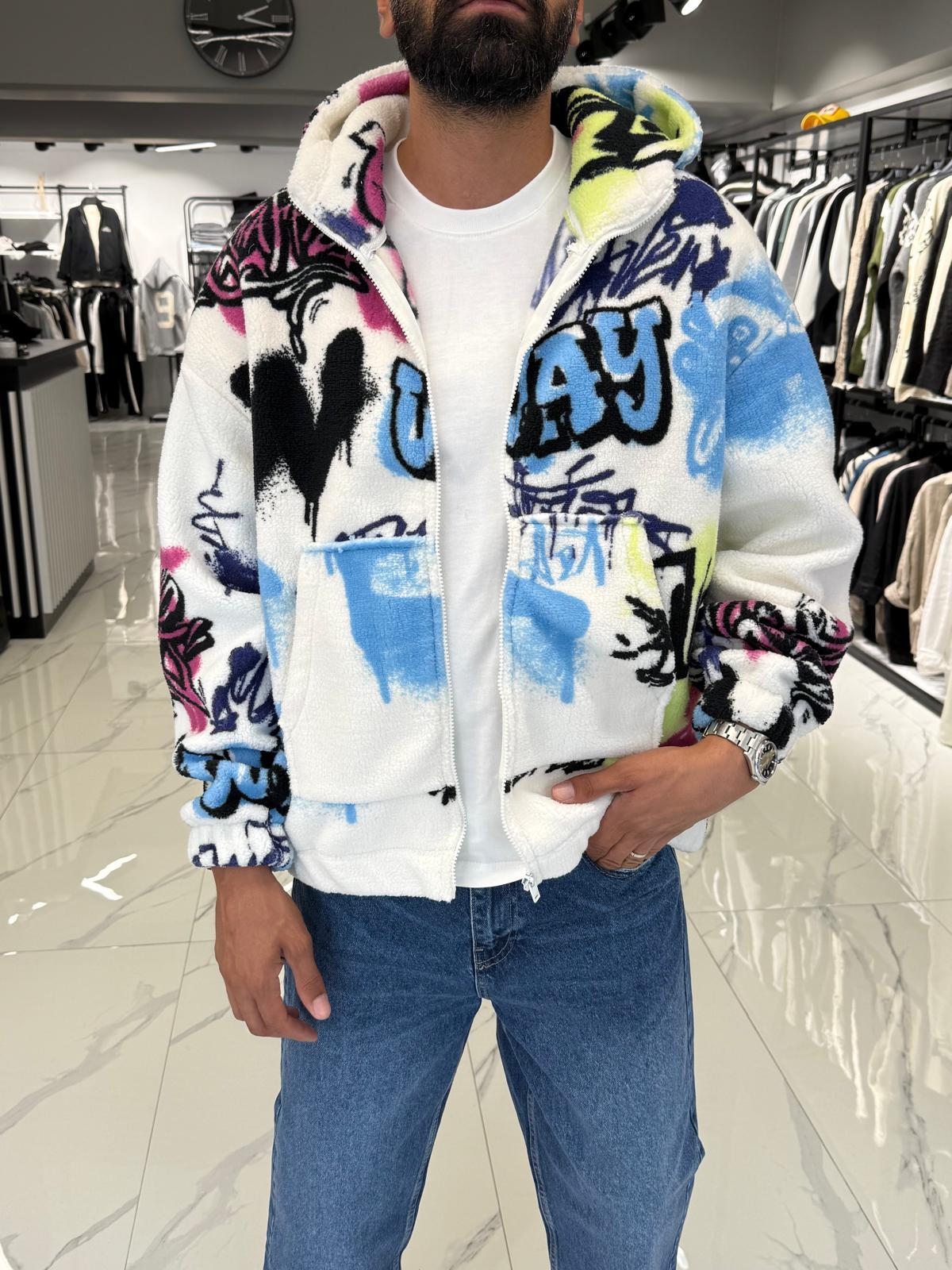 Desenli Oversize Peluş Mont