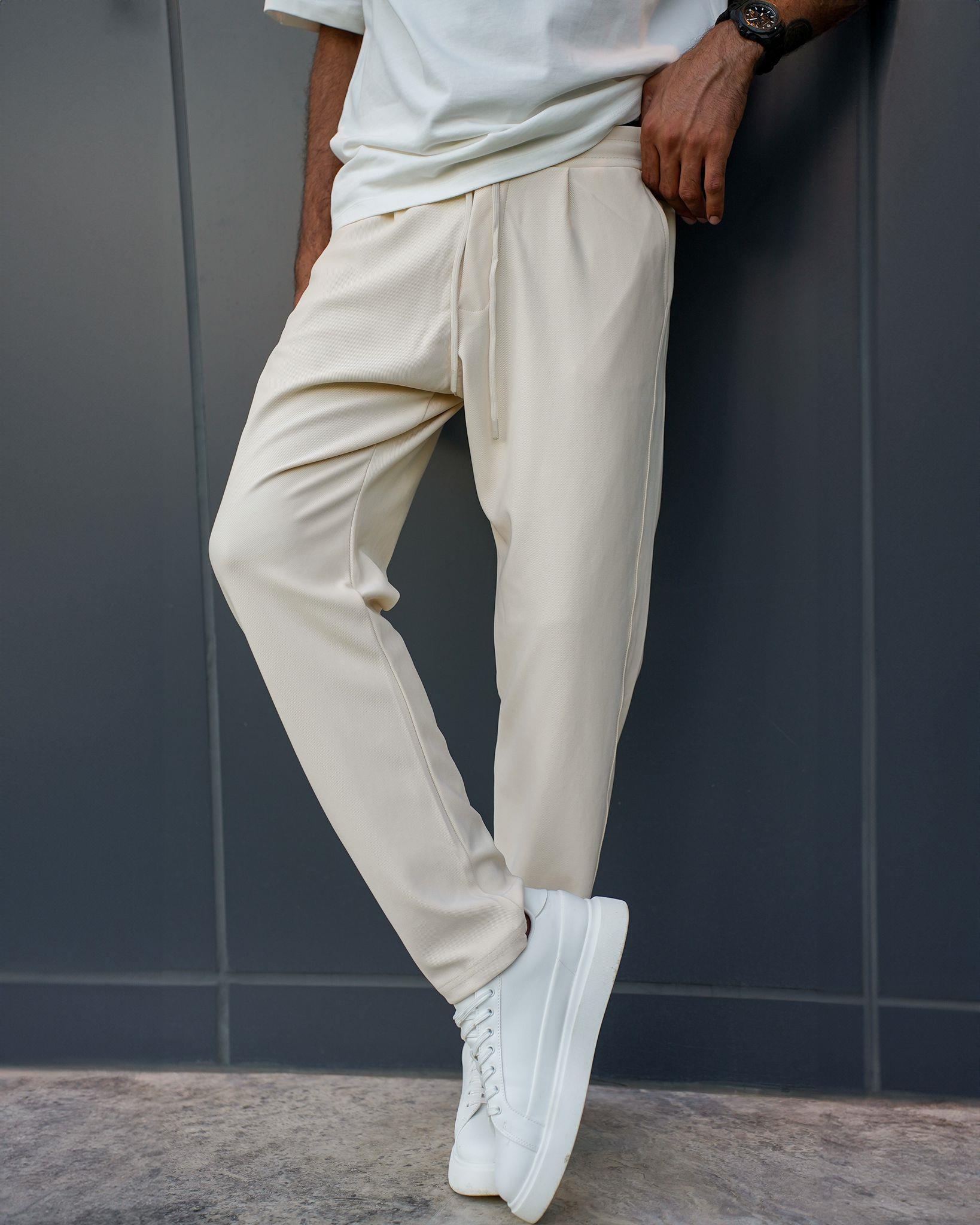 Dıagonel Normal Kalıp Lastikli Pantolon Krem