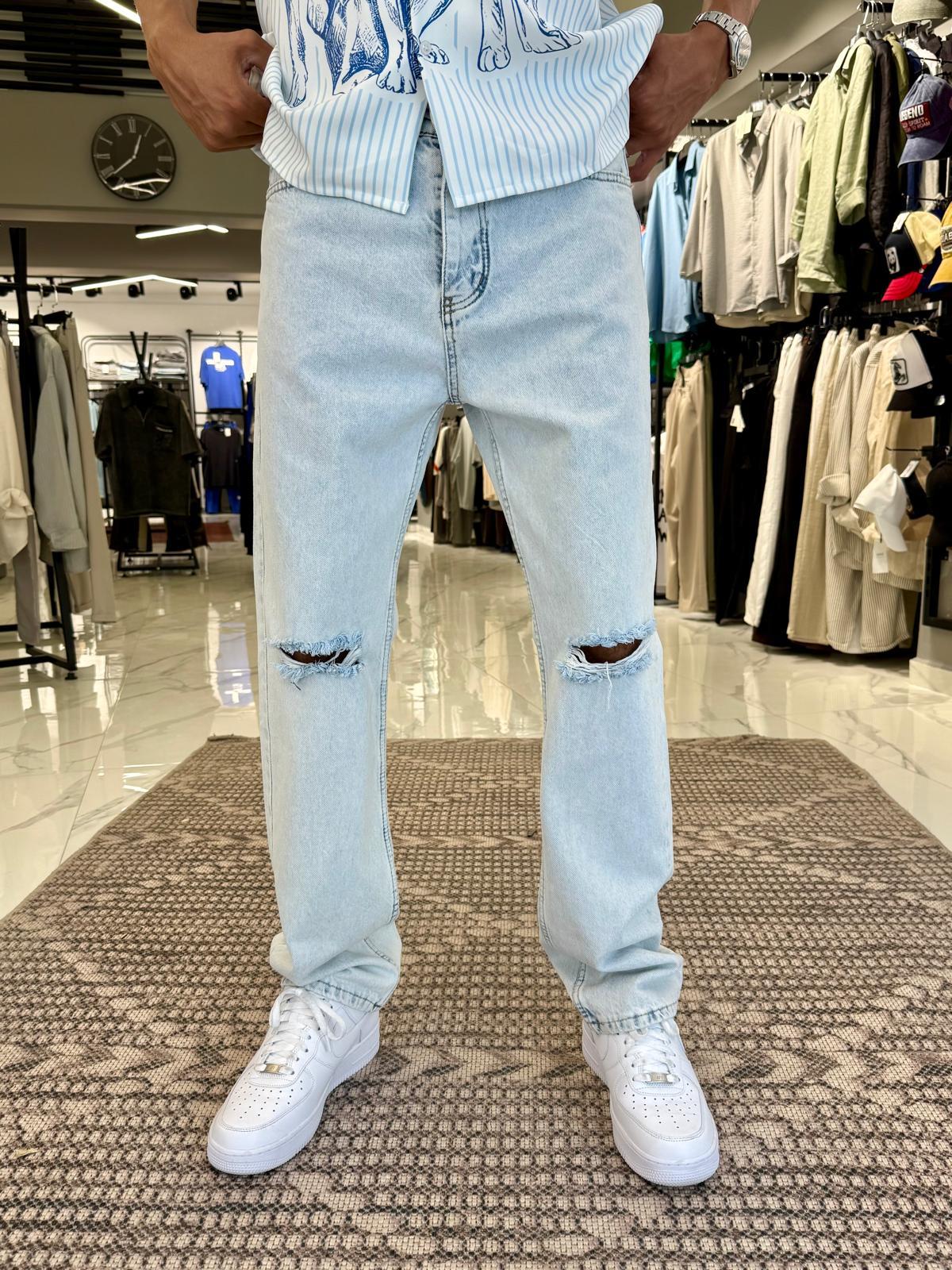 Dizi Yırtık Baggy Kalıp Pantolon Mavi