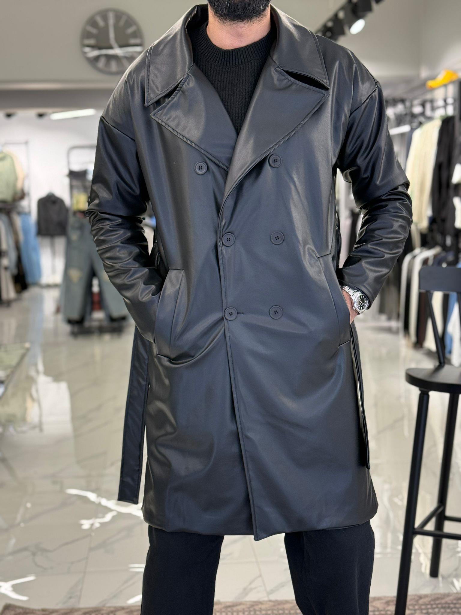 Düğmeli Deri Trençkot