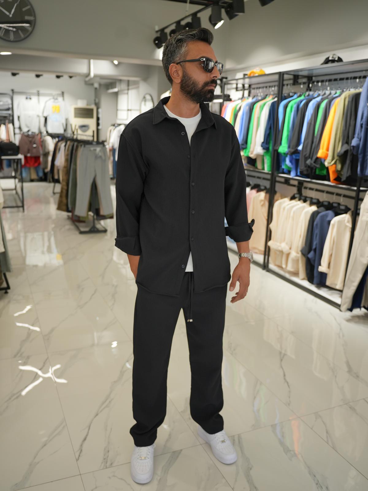 Fitilli Ottoman Kumaş Takım Siyah