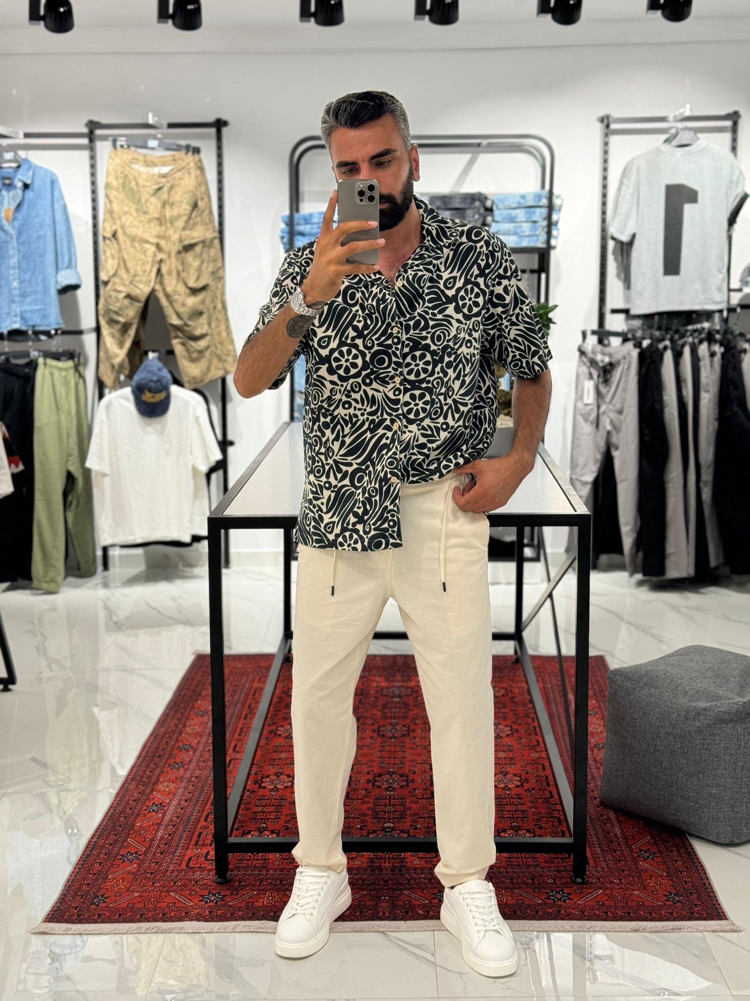 Full Baskı Detaylı Keten Kumaş  Oversıze Gömlek