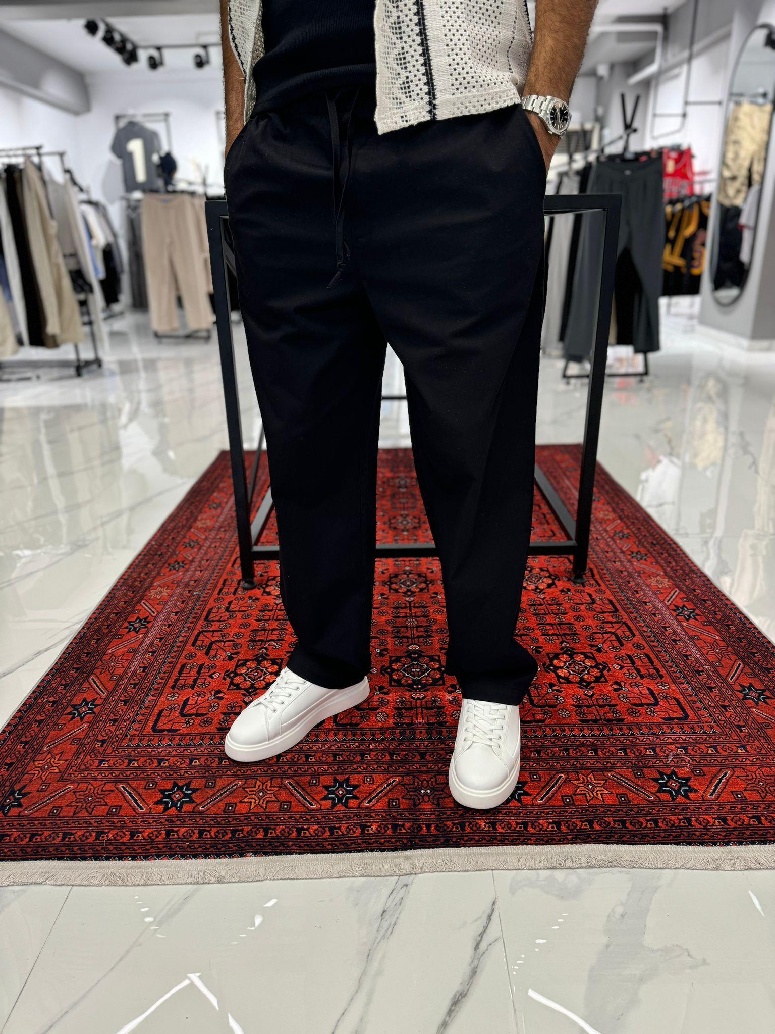 Gabardin Kumaş Bol Paça Kot Pantolon Siyah