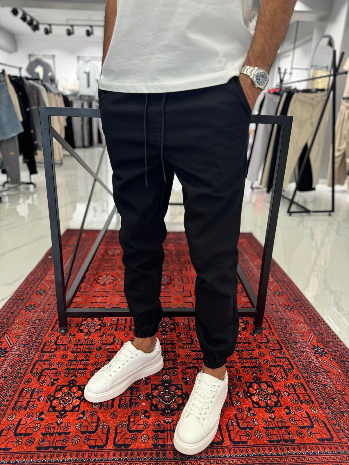 Gabardin Kumaş Paça Lastkli Jogger Pantolon Siyah
