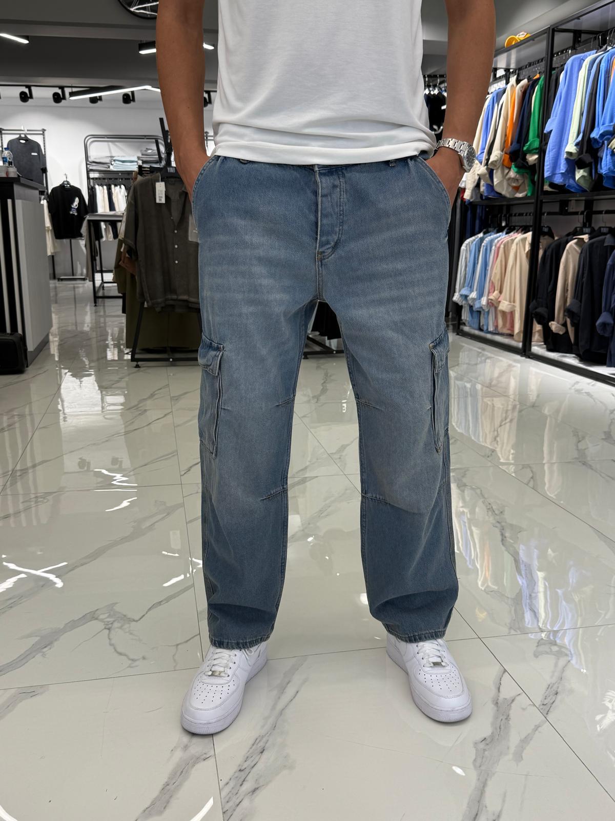 Kargo Cep Baggy Kalıp Pantolon Mavi