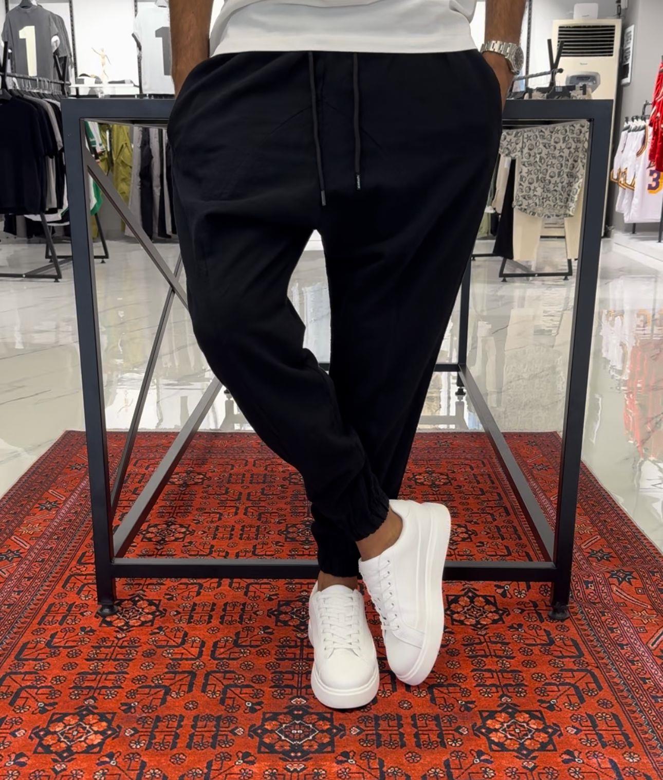 Keten Şalvar Pamuk Kumaş  Paça Lastikli Jogger Siyah