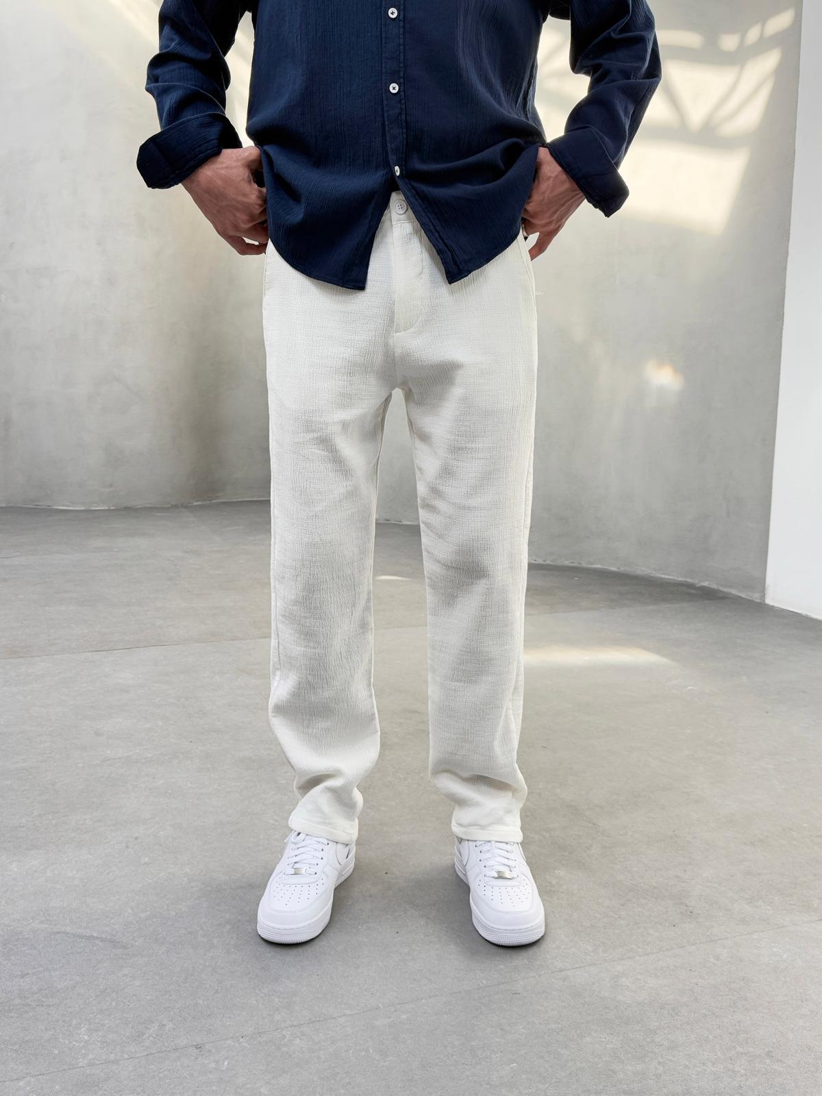 Kırinkıl Keten Kumaş Baggy Pantolon Beyaz