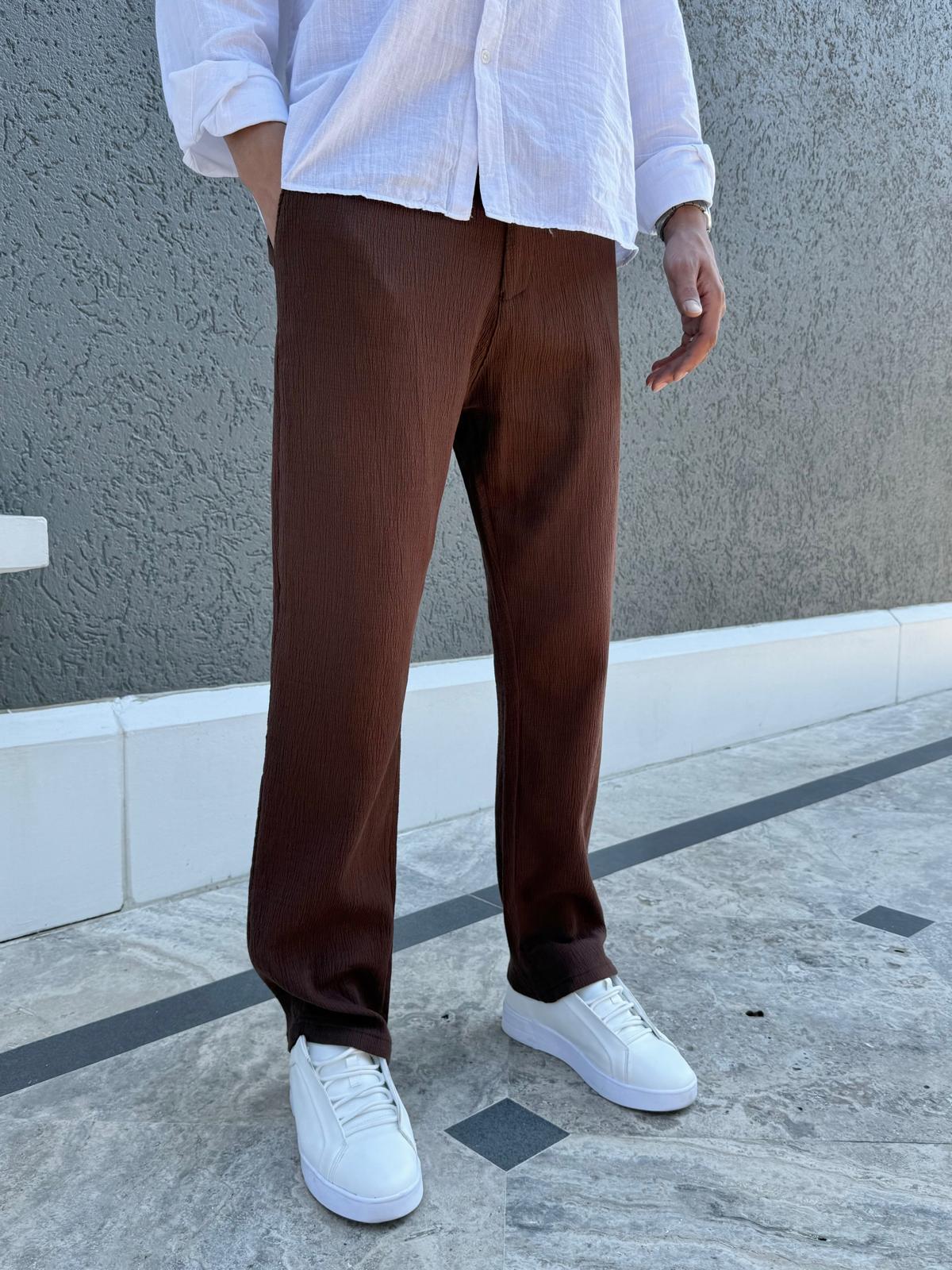 Kırinkıl Keten Kumaş Baggy Pantolon Kahverengi