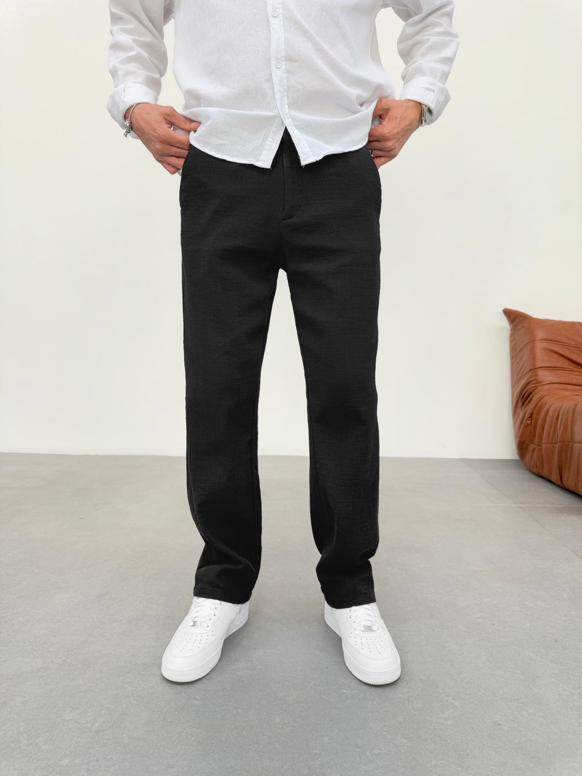 Kırinkıl Keten Kumaş Baggy Pantolon Siyah