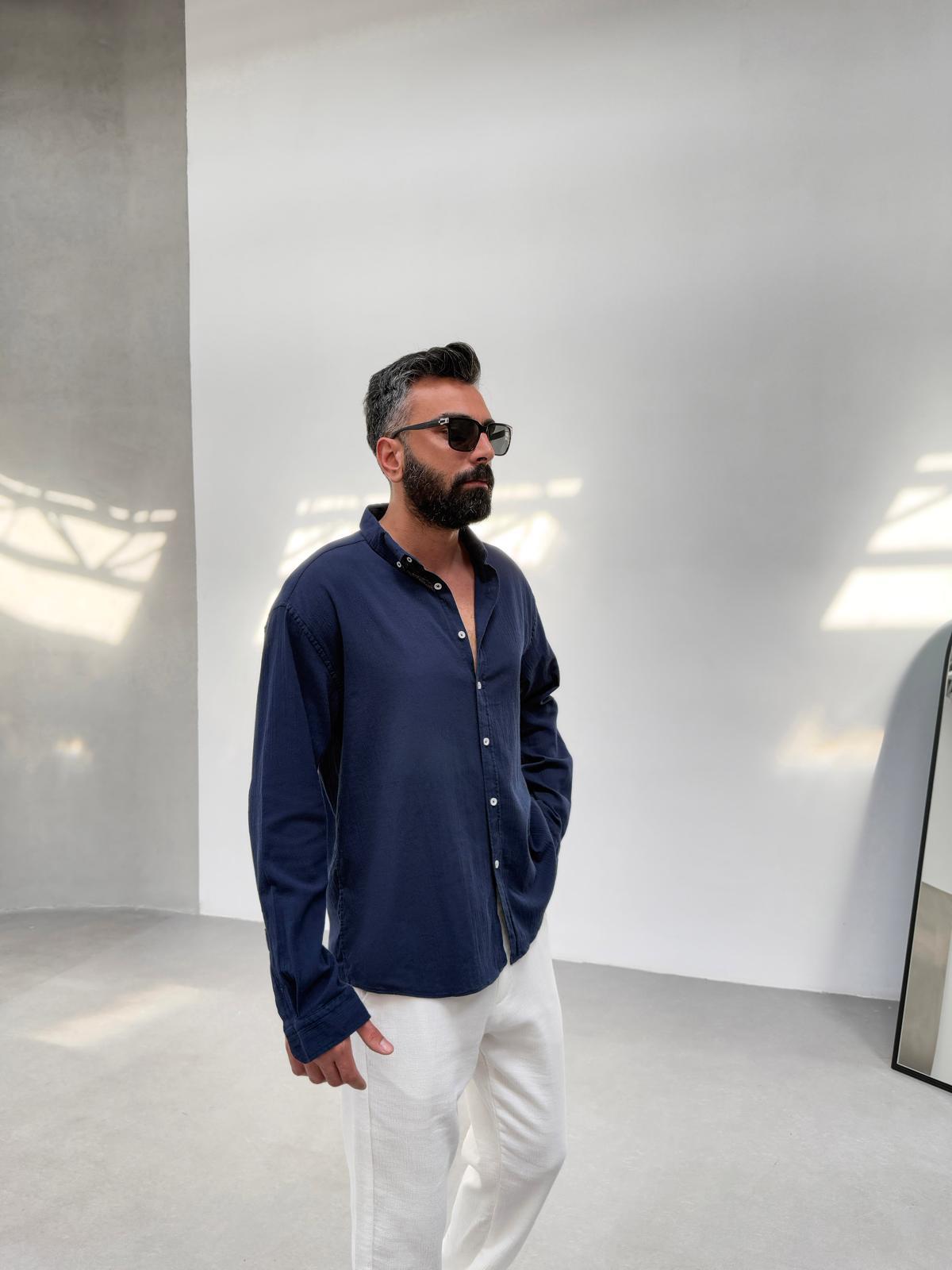 Kırinkıl Keten Kumaş Gömlek Lacivert