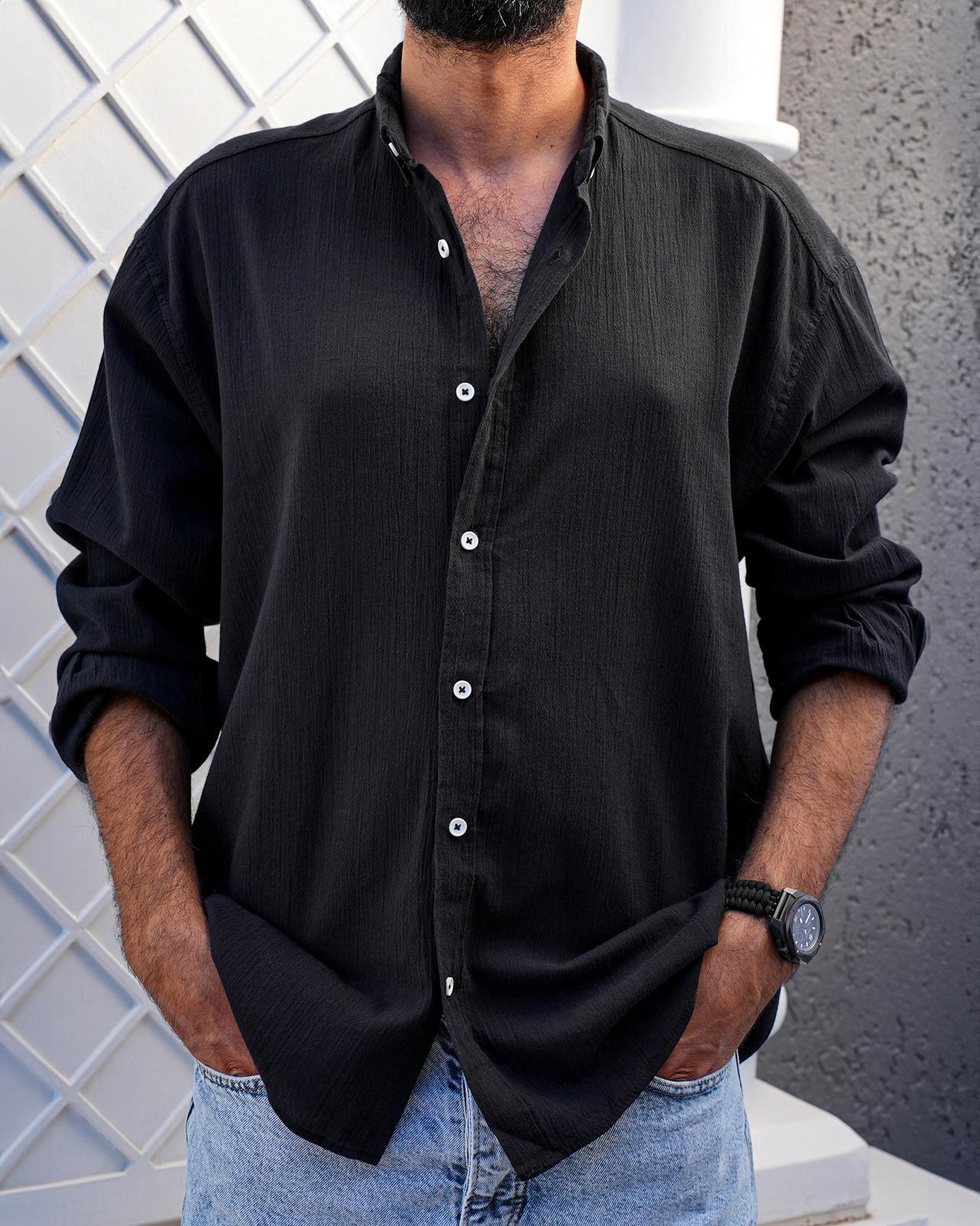 Kırinkıl Pamuk Kumaş Oversize Gömlek Siyah