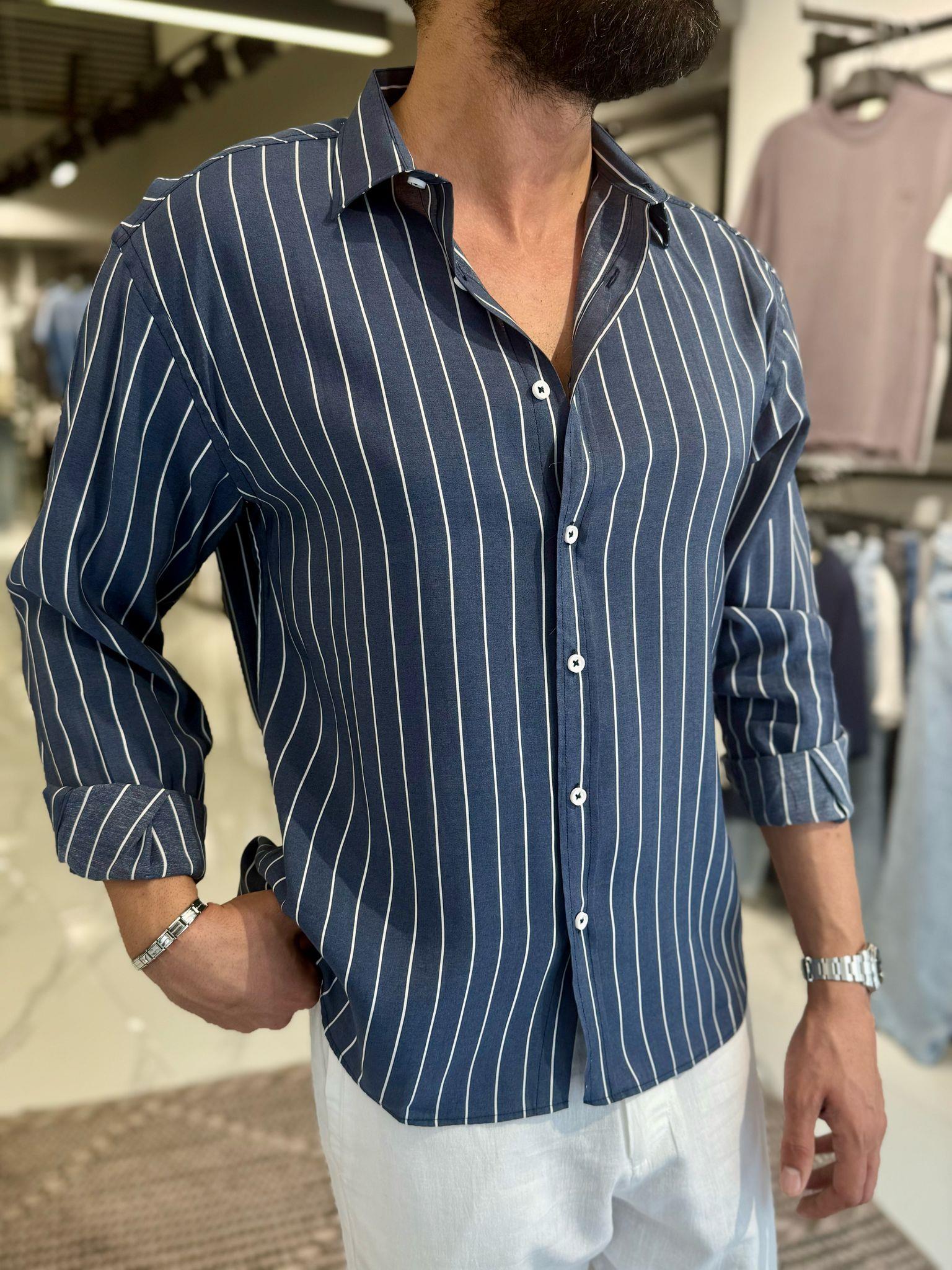 Modal Kumaş Çizgili Gömlek Bebe Mavisi Modal Kumaş Çizgili Gömlek Beyaz Çizgili