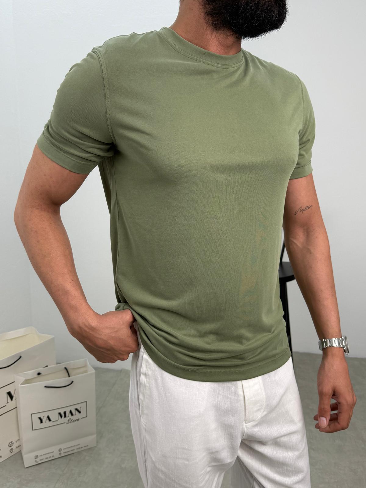 Modal Kumaş Likralı Basic T-Shirt Haki