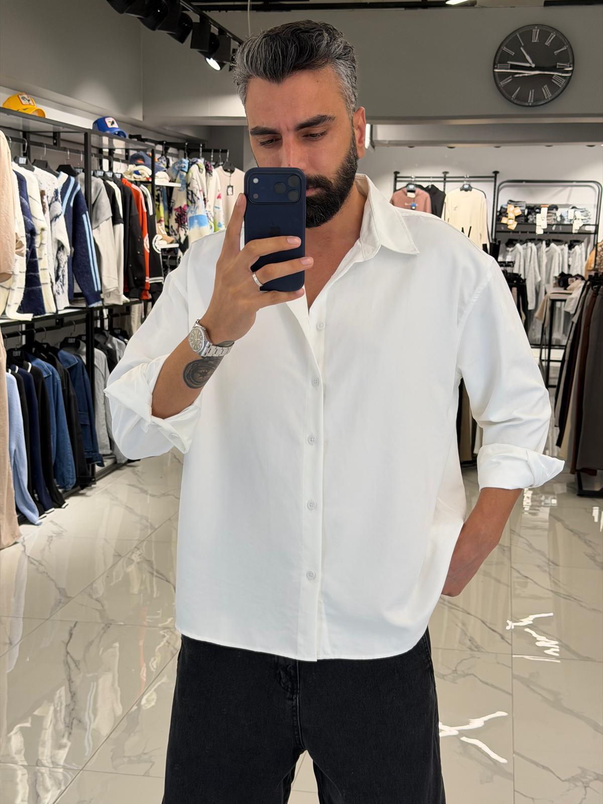 Modal Kumaş Oversize Gömlek Beyaz