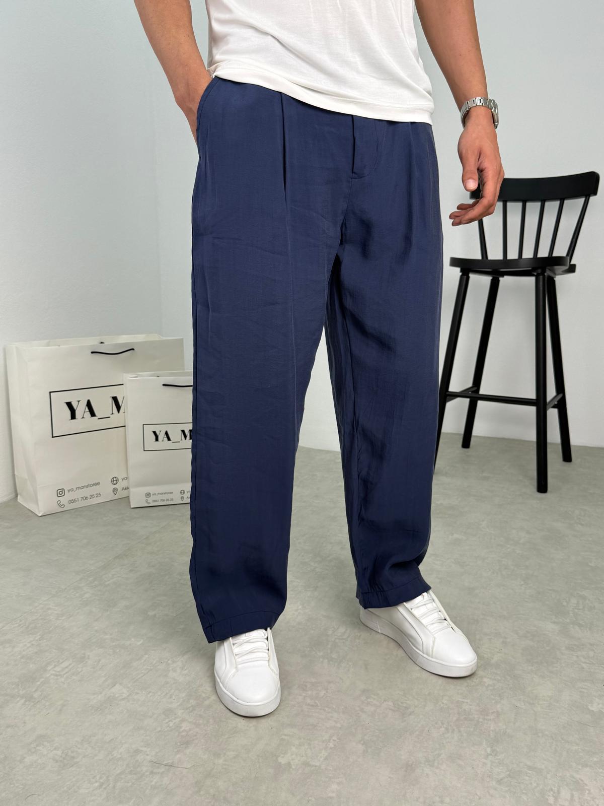 Modal Kumaş Pile Detaylı Baggy Kalıp Pantolon Lacivert