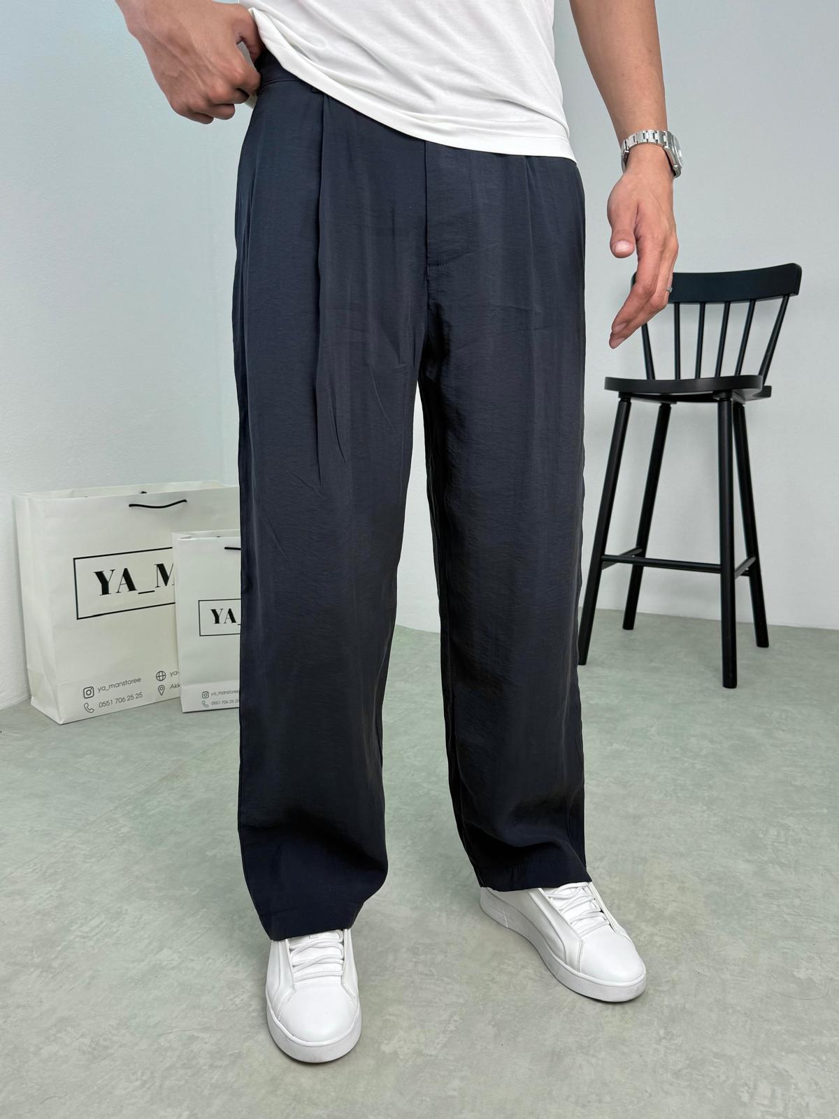 Modal Kumaş Pile Detaylı Baggy Kalıp Pantolon Siyah