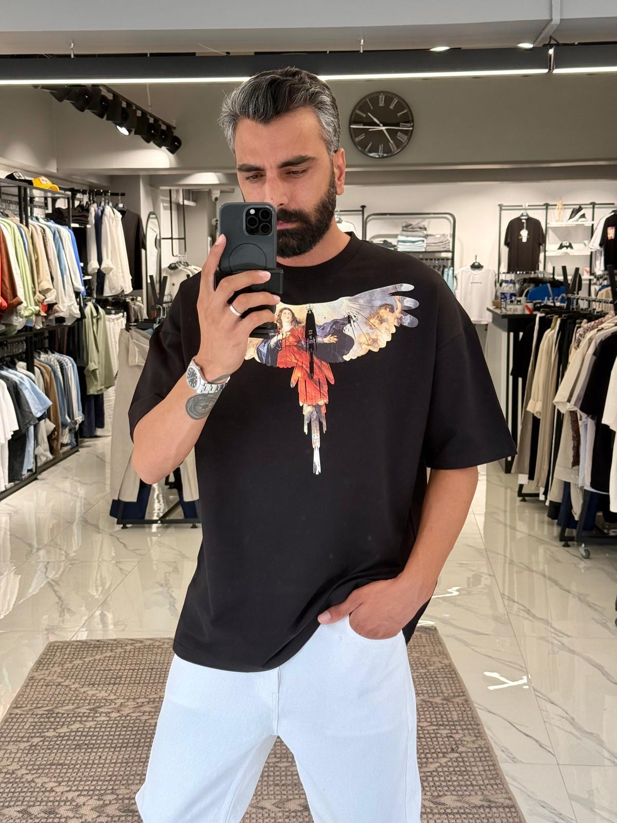 Mona Lisa Baskılı Oversize Tişört Siyah