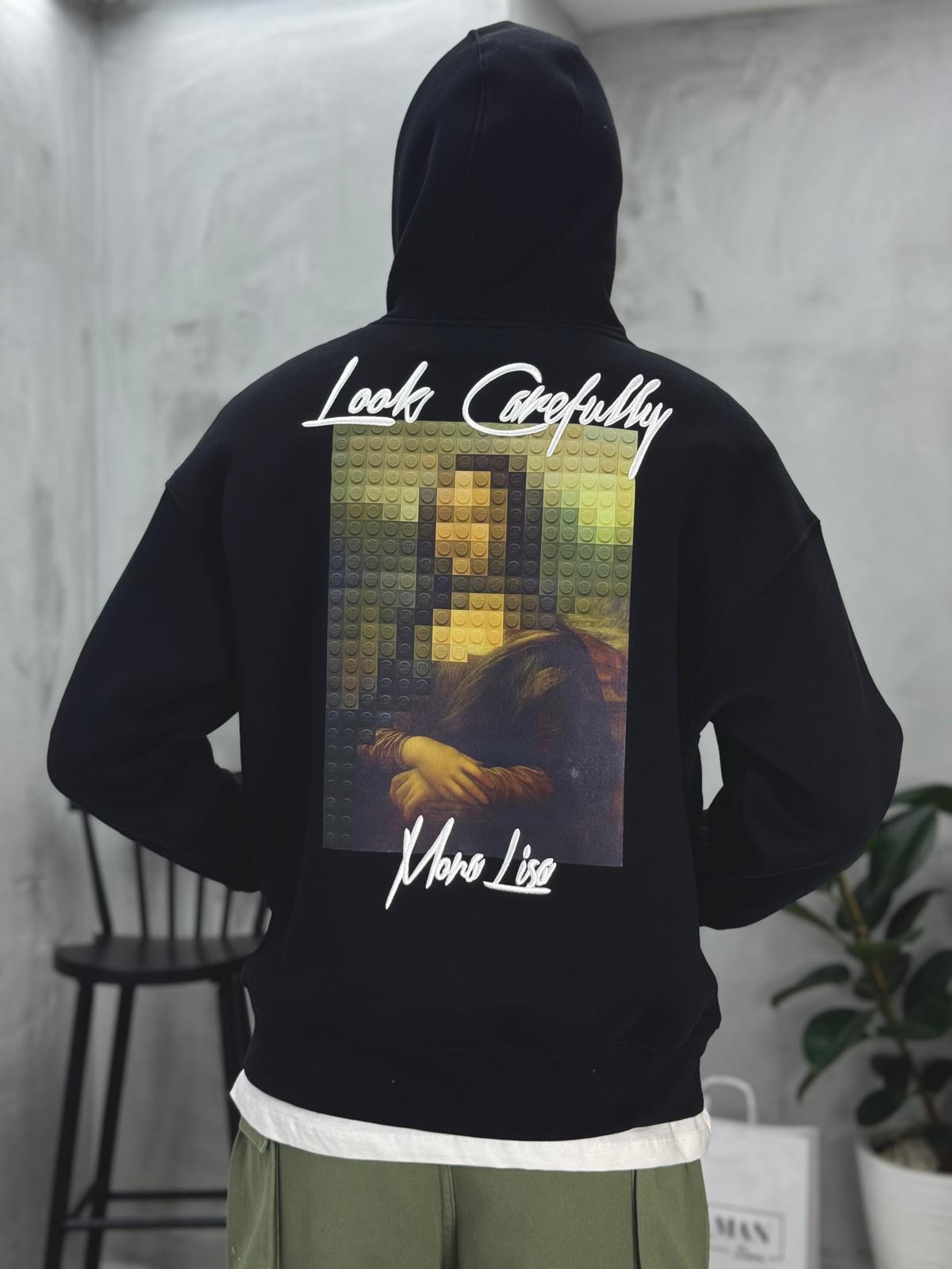 Mona Lisa Baskılı Sweatshirt Siyah