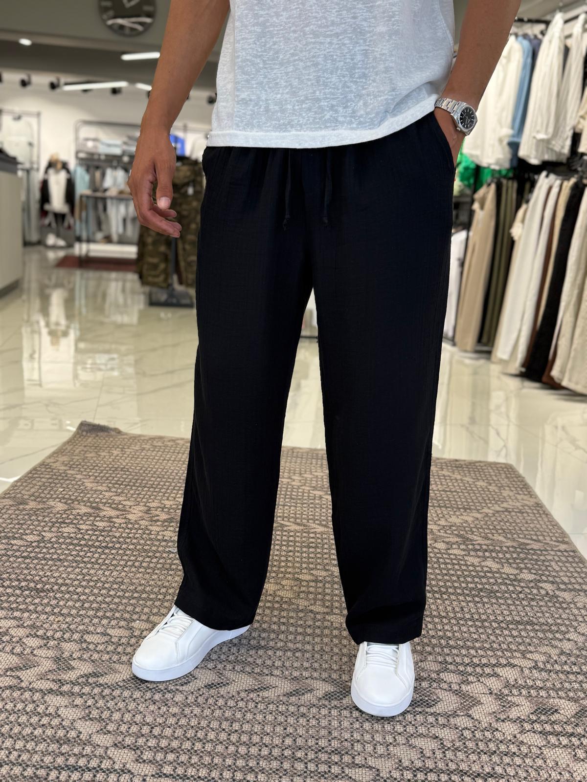 Müslin Pamuk Kumaş Baggy Pantolon Siyah