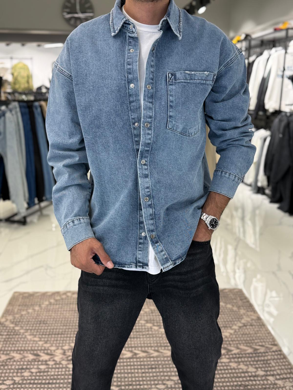 Ön Cep Detaylı Ceket Gömlek Mavi