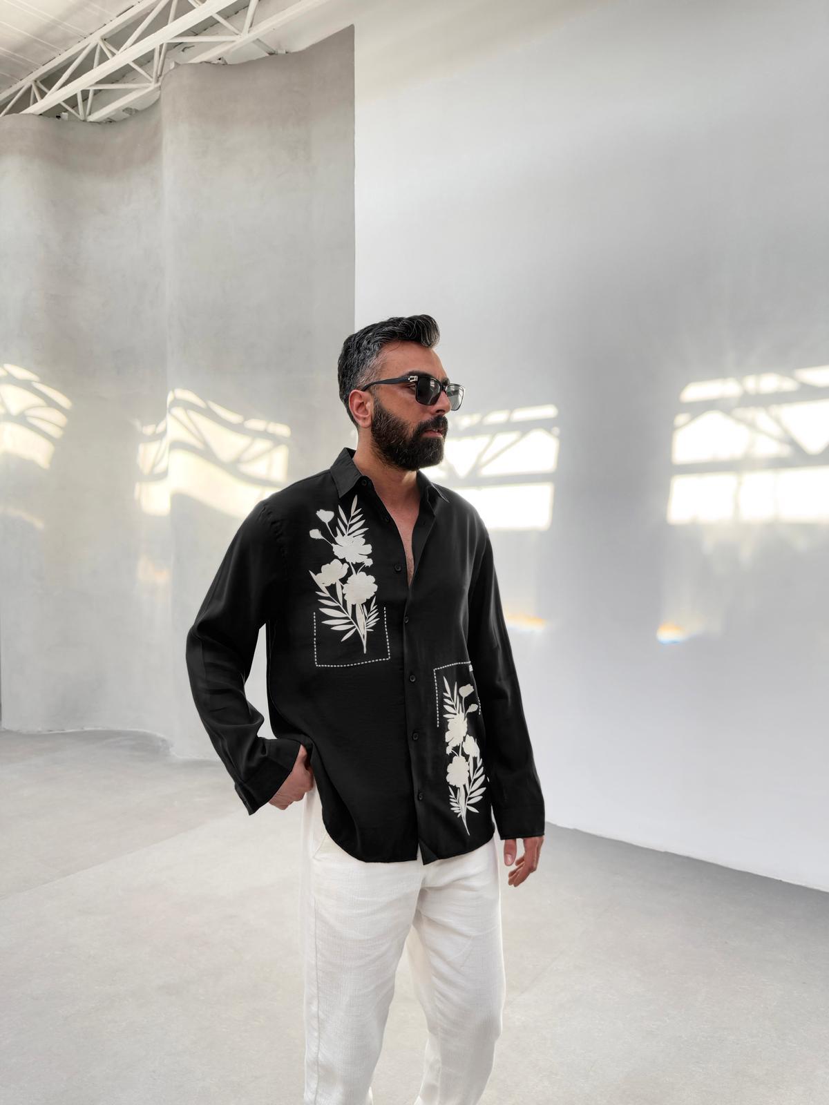 Oversize Çiçek Baskılı Gömlek Beyaz Oversize Çiçek Baskılı Gömlek Lacivert