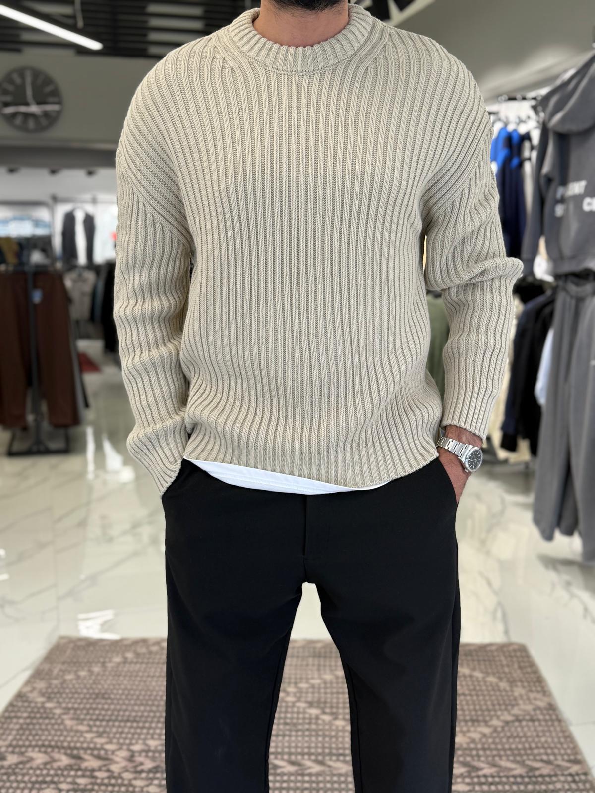Oversize Kalıp Dolgun Örme Kazak Bej