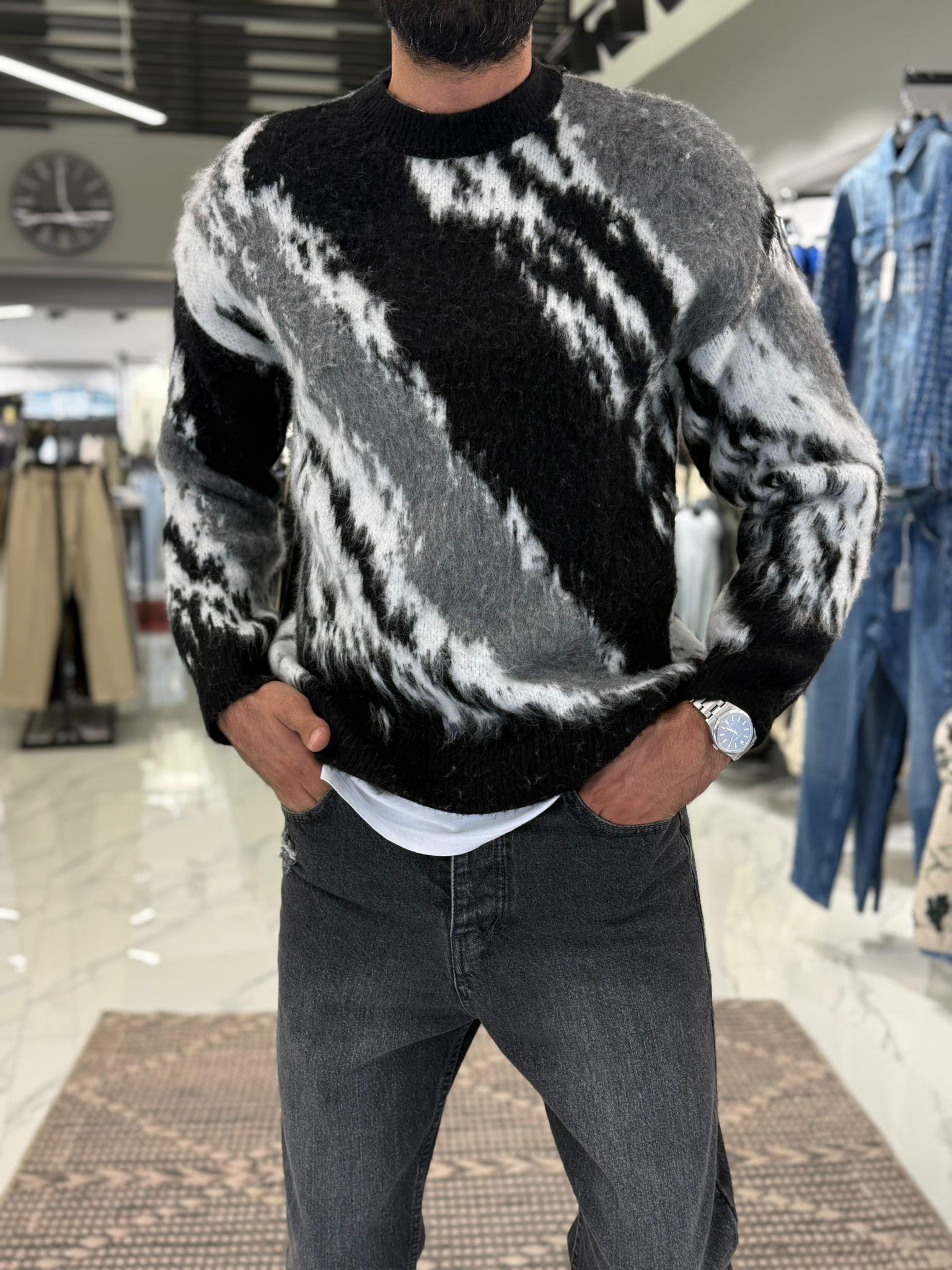 Oversize Renkli Triko Kazak Mavi Oversize Renkli Triko Kazak Kahve