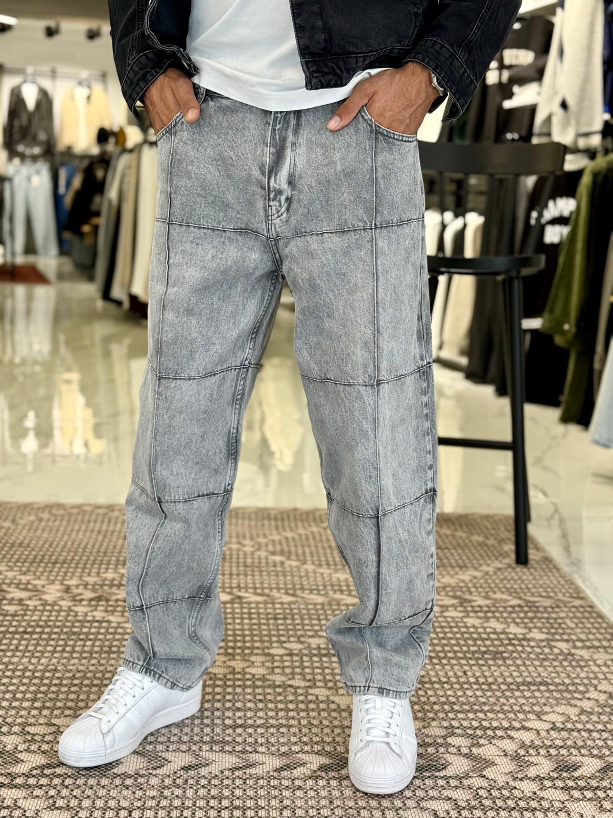 Özel Tasarım Dikiş Detaylı Baggy Kalıp Pantolon Gri