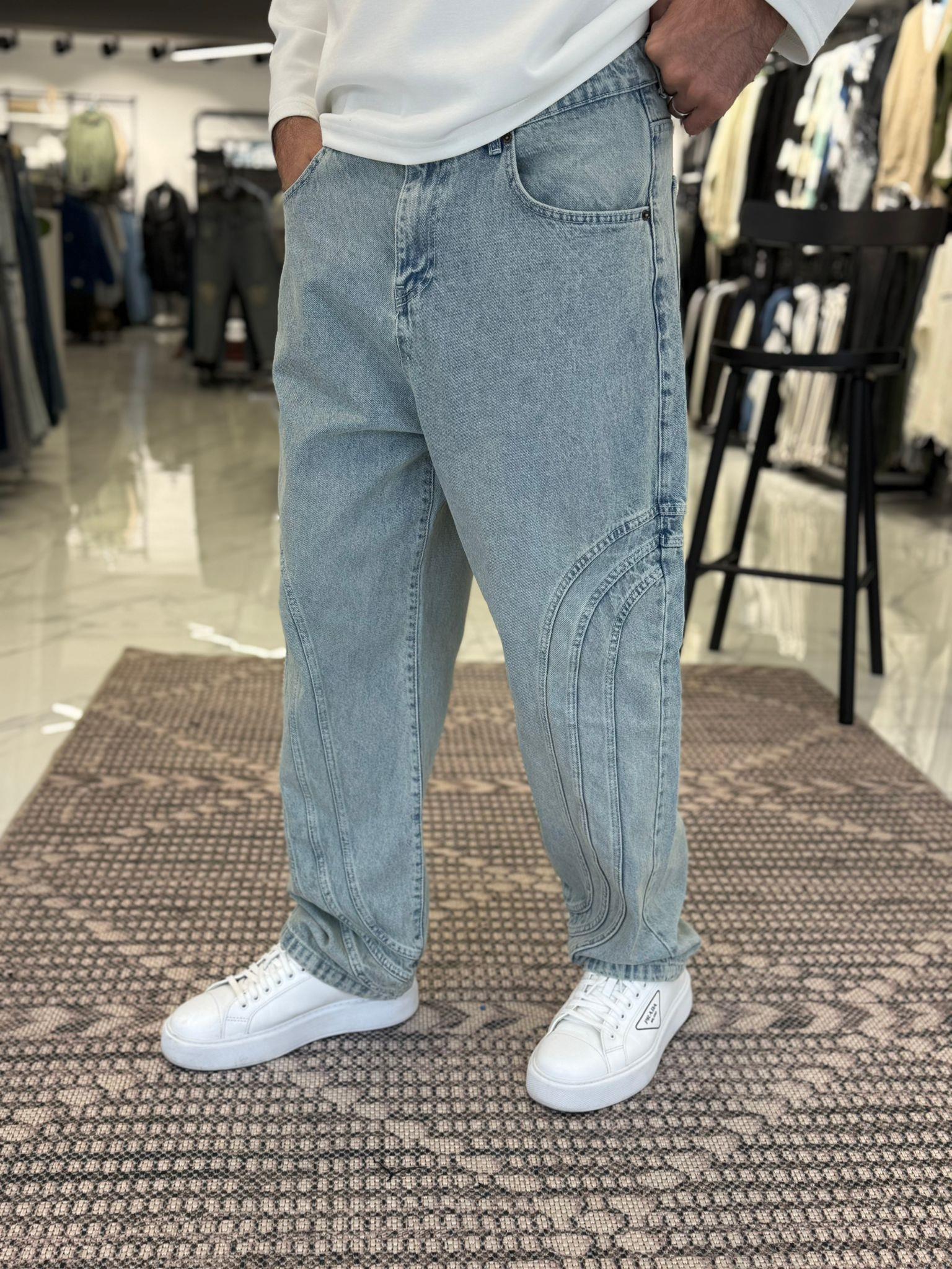 Özel Tasarım Şerit Detaylı Baggy kalıp Pantolon Mavi