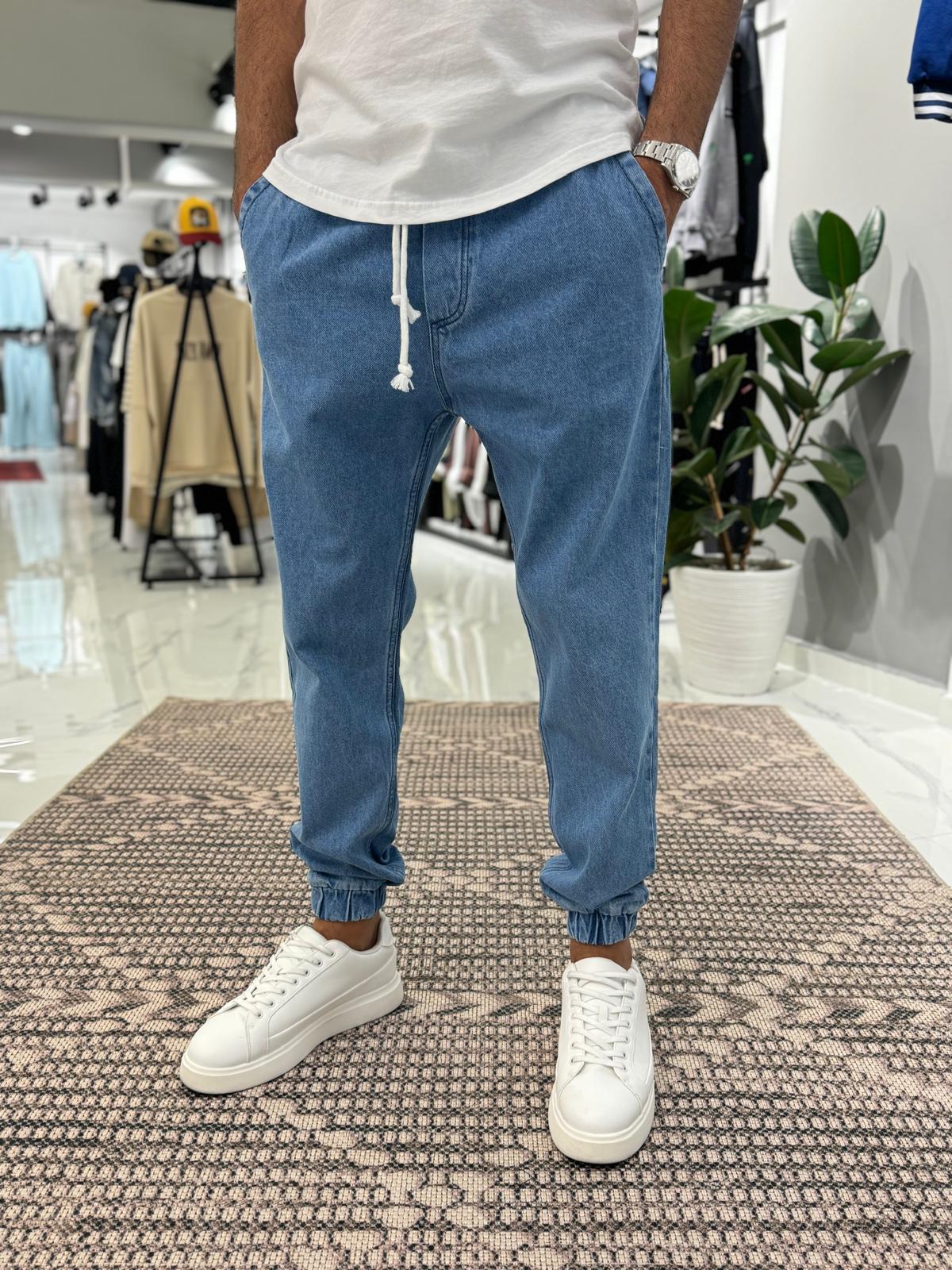 Paça Lastik Kot Pantolon Mavi