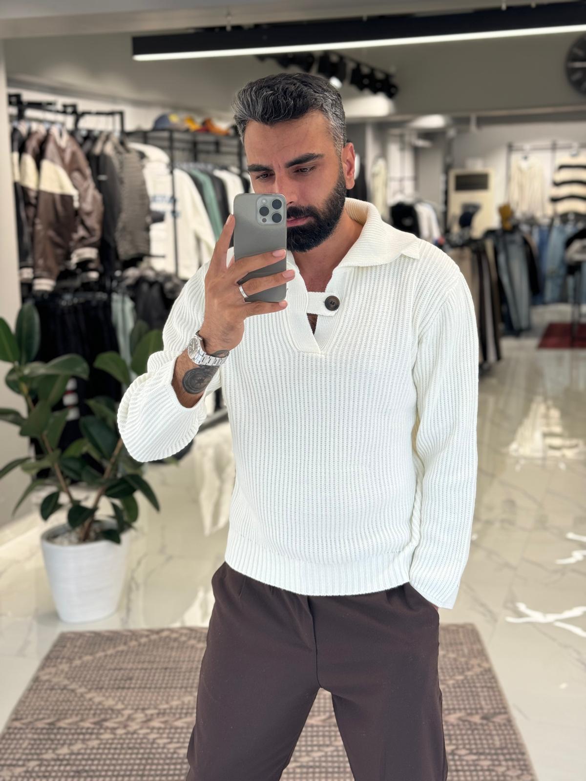 Polo Yaka Düğme Detay Triko Gri Polo Yaka Düğme Detay Triko Lacivert